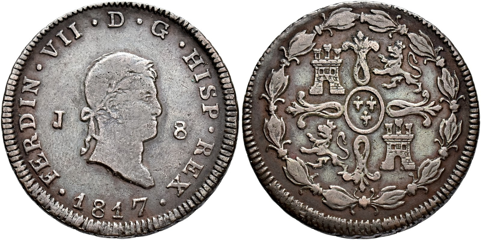 FERNANDO VII. 8 maravedís. 1817. Jubia. CU 8,89 g. 31,6 mm. VI-206; AC-197; Orol-JU.9 MBC-/MBC. Escasa.