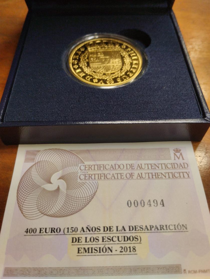 FELIPE V. 150 años de la desaparición de los escudos. 400 euros conmemorativos FNMT 2018. AU 27 g. Proof. En su estuche y con certificado.
