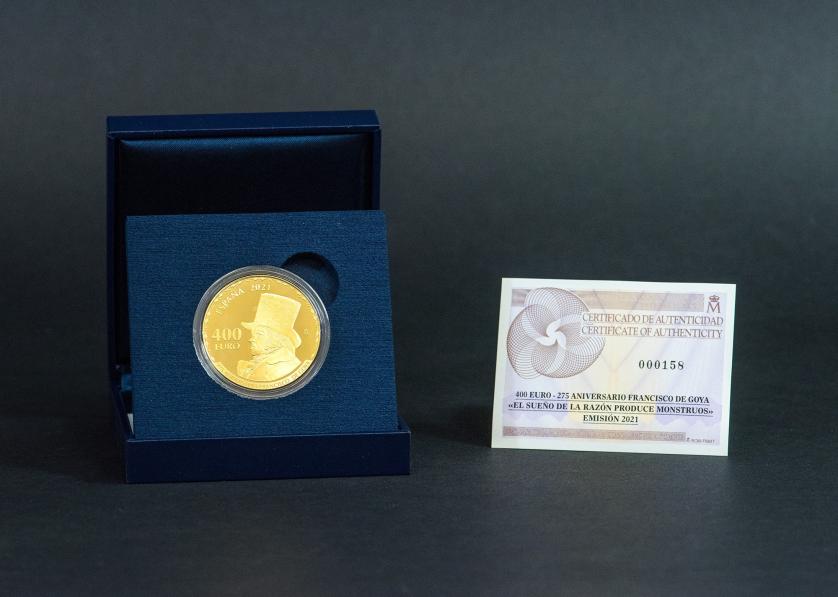 FELIPE VI. 275 aniversario. Francisco de Goya. 2021. 400 euros conmemorativos (AU 27 g). FNMT. Proof. En su estuche y con certificado.