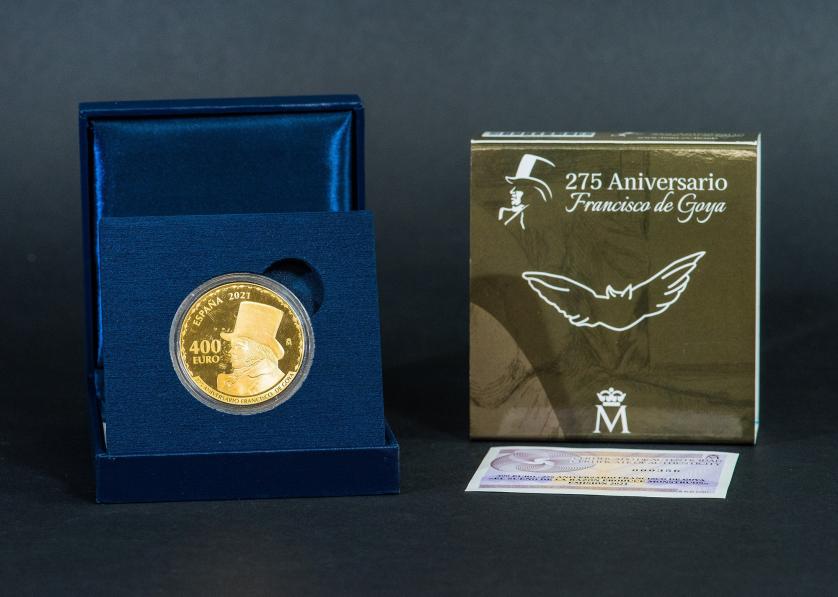 FELIPE VI. 275 aniversario. Francisco de Goya. 2021. 400 euros conmemorativos (AU 27 g). FNMT. Proof. En su estuche y con certificado.