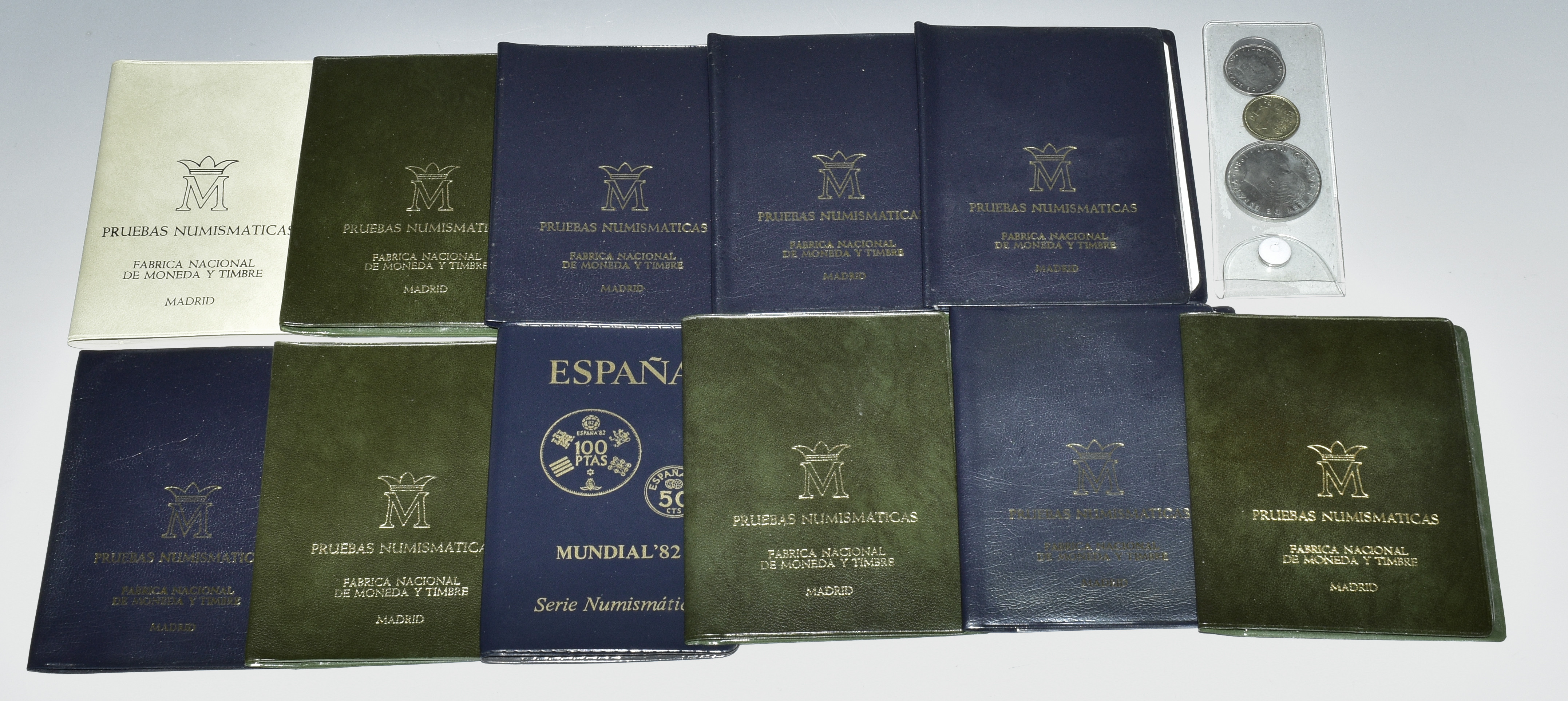 JUAN CARLOS I. Lote de 10 carteritas FNMT: 1976 (1), 1977 (4), 1978 (4) y 1980 (1) y 4 monedas sueltas. SC.