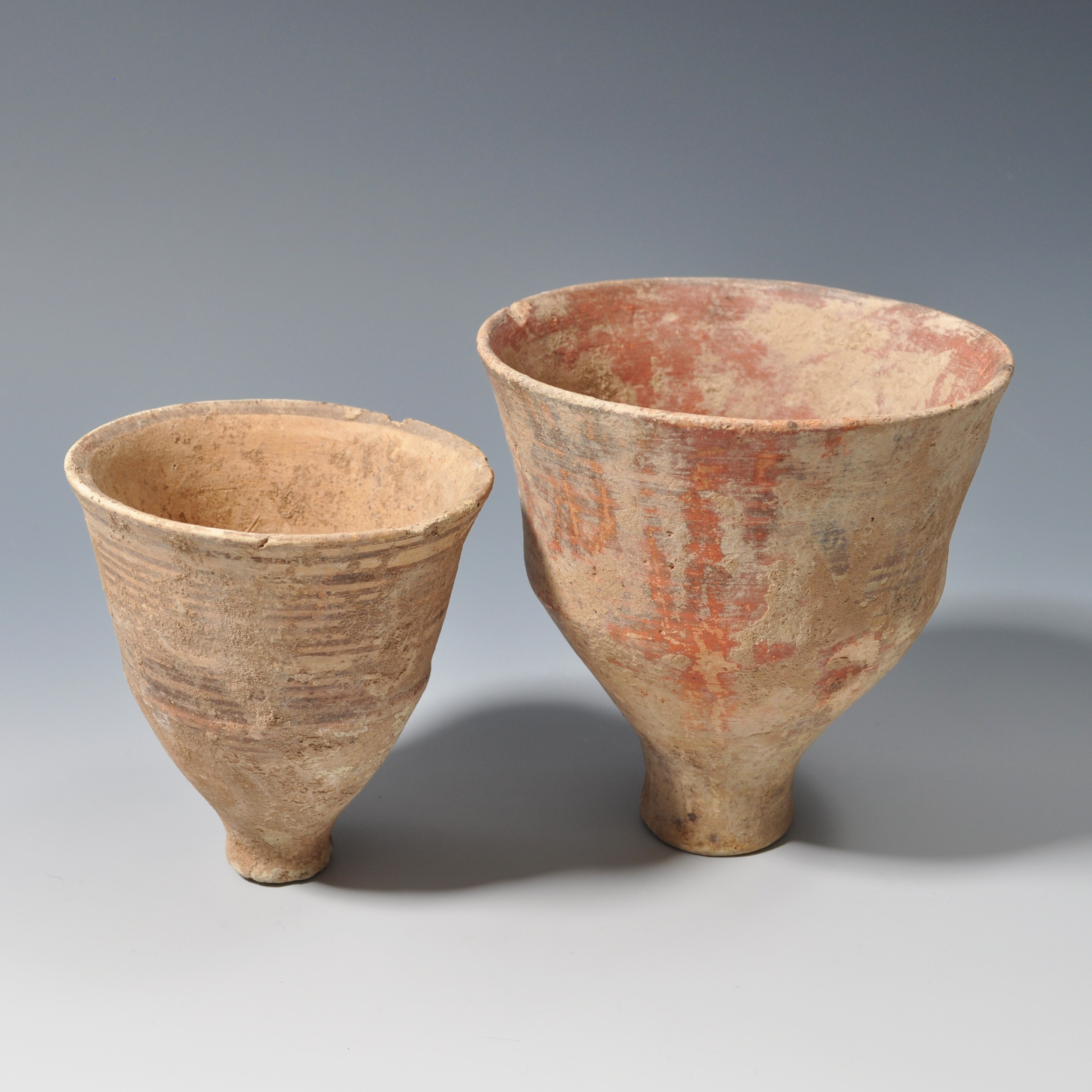 ARQUEOLOGÍA. PRÓXIMO ORIENTE. Lote de 2 vasos con decoración pintada de líneas horizontales (I milenio a.C.). Terracota. Altura de 9,5 a 12 cm.