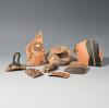ARQUEOLOGÍA. GRECIA ANTIGUA. Apulia. Lote de 8 fragmentos de cerámica de figuras rojas, entre ellos una tapa de píxide y dos asas (ss. IV-III a.C.). Cerámica. Longitud de 5 a 13 cm.