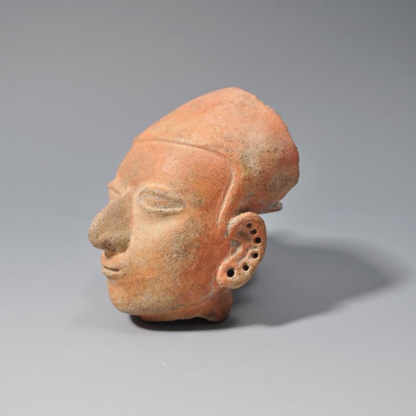 ARQUEOLOGÍA. PREHISPÁNICO. Cultura La Tolita. Fragmento de cabeza (200 a.C.-700 d.C.). Cerámica. Altura 9 cm.