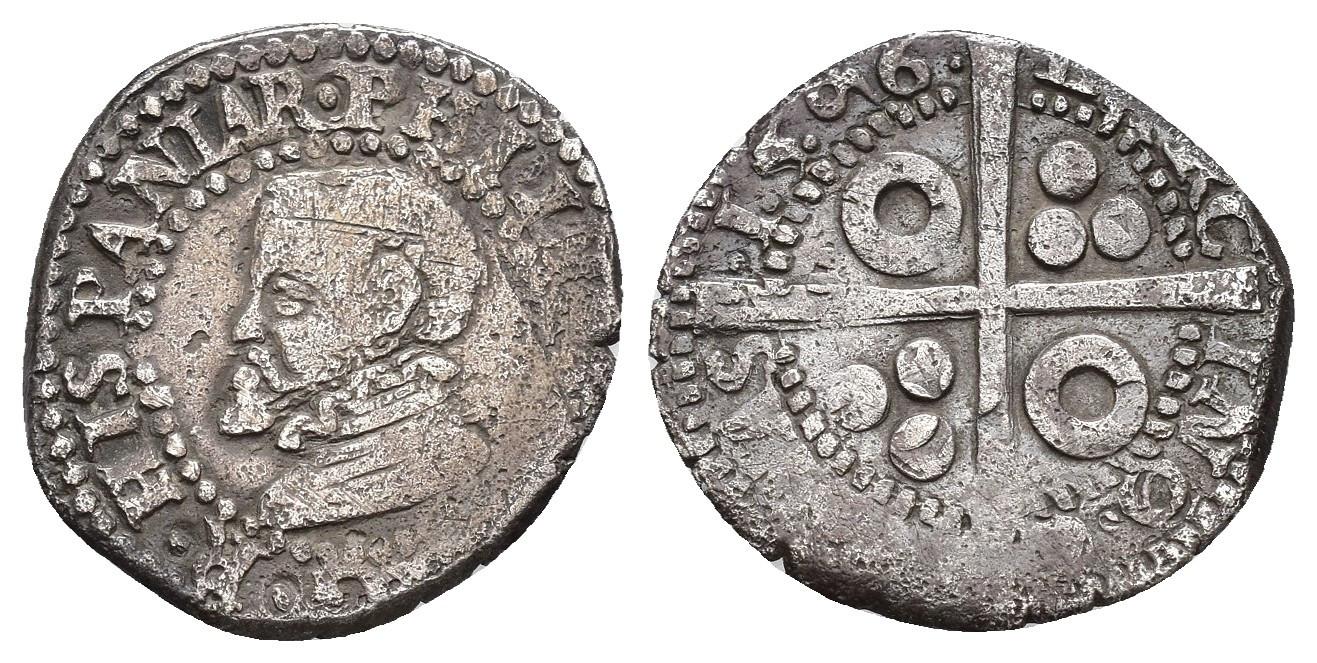 FELIPE II. 1/2 croat. Barcelona (1596) AR 1,56 g. 16,88 mm. AC-111. Finas rayas. BC+/MBC-.