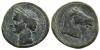 HISPANIA ANTIGUA. Emisiones hispano-cartaginesas. Unidad. A/ Cabeza de Tanit a izq. R/ Cabeza de caballo a der. AE 11,77 g. 24,3 mm. I-510; ACIP-578. Pátina oscura. MBC/MBC-.