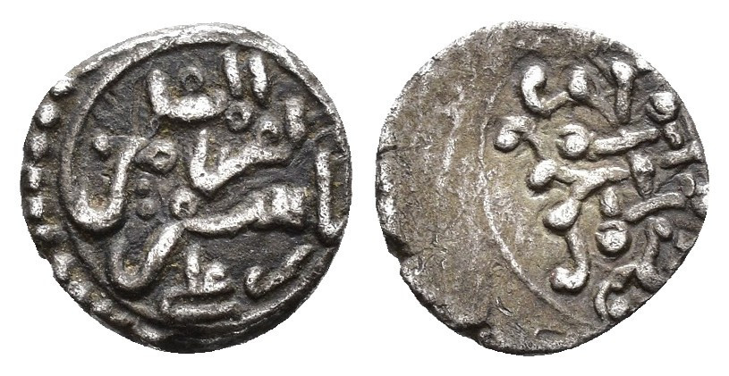 ALMORÁVIDES. TASUFIN B. 'ALI. 1/2 quirate. Sin ceca. Sin fecha. AR 0,47 g. 8 mm. V-1873; B-Da14. Rev. descentrado. MBC. Escasa.
