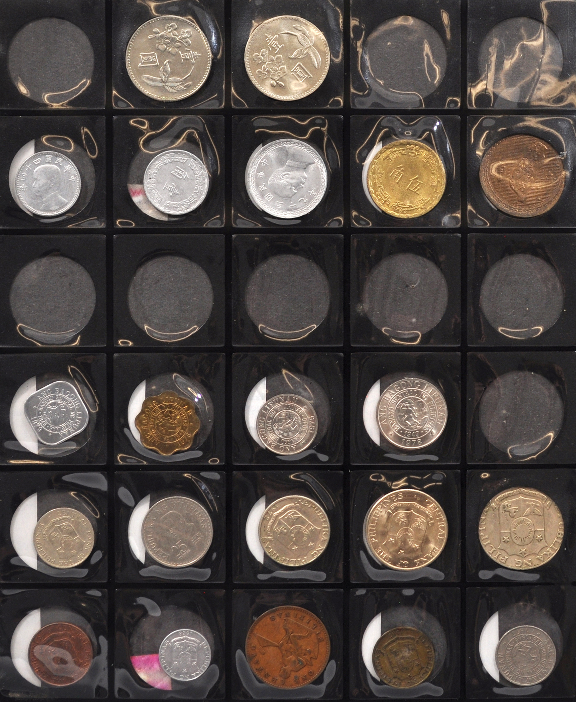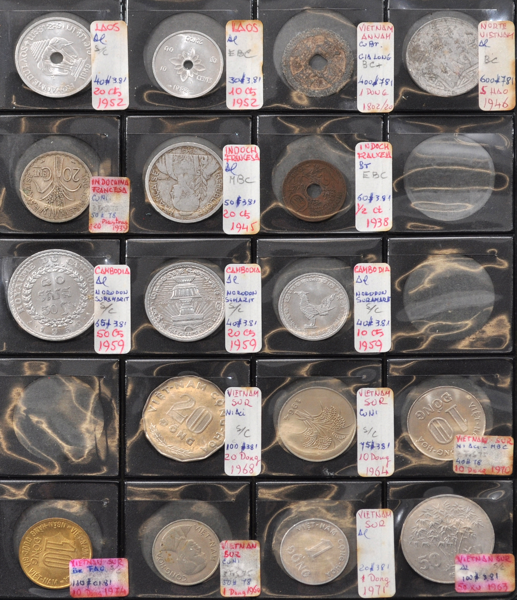 MONEDAS EXTRANJERAS. Colección de monedas asiáticas en diferentes módulos y metales. Tailandia (38); Laos (2); Vietnam del Norte (2); Indochina Francesa (3); Camboya (3); Vietnam del Sur (7); Hong Kong (17); Tíbet (1); China (13); Corea del Norte (3); Corea del Sur (11); Macao (4); Japón (24); Taiwan (7); Filipinas (18). Total: 153 monedas. bc+/sc.