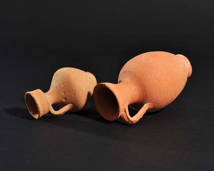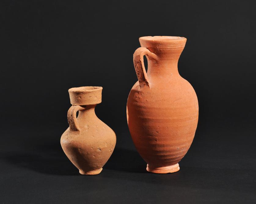 ARQUEOLOGÍA. PRÓXIMO ORIENTE. Reino Nabateo. Lote de 2 jarras (ss. I a.C.-I d.C.). Cerámica. Altura de 9 a 14 cm.