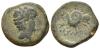 HISPANIA ANTIGUA. IKALESKEN. Unidad. A/ Cabeza masculina a der. R/ Jinete lancero a izq. con escudo redondo, debajo, ley. ibérica: IKALES. AE 13,25 g. 25,9 mm. I-1398; ACIP-2076; CC-2433, mismo ejemplar. Pátina verde oscuro. BC+. Rara.