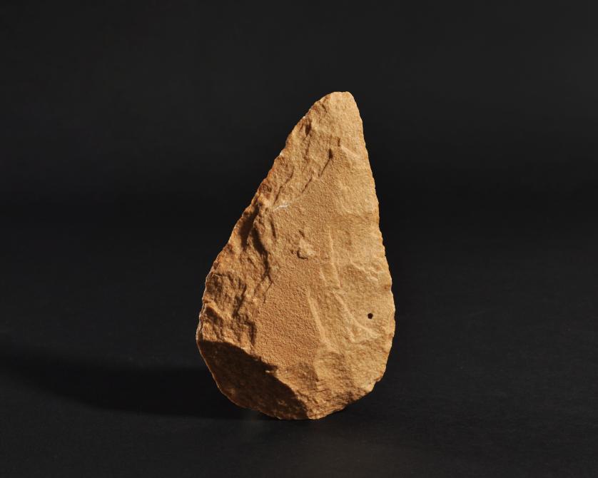 ARQUEOLOGÍA. PREHISTORIA. Paleolítico Inferior, Achelense. Bifaz (ca. 300.000 a.C.). Cuarcita. Longitud 14 cm.