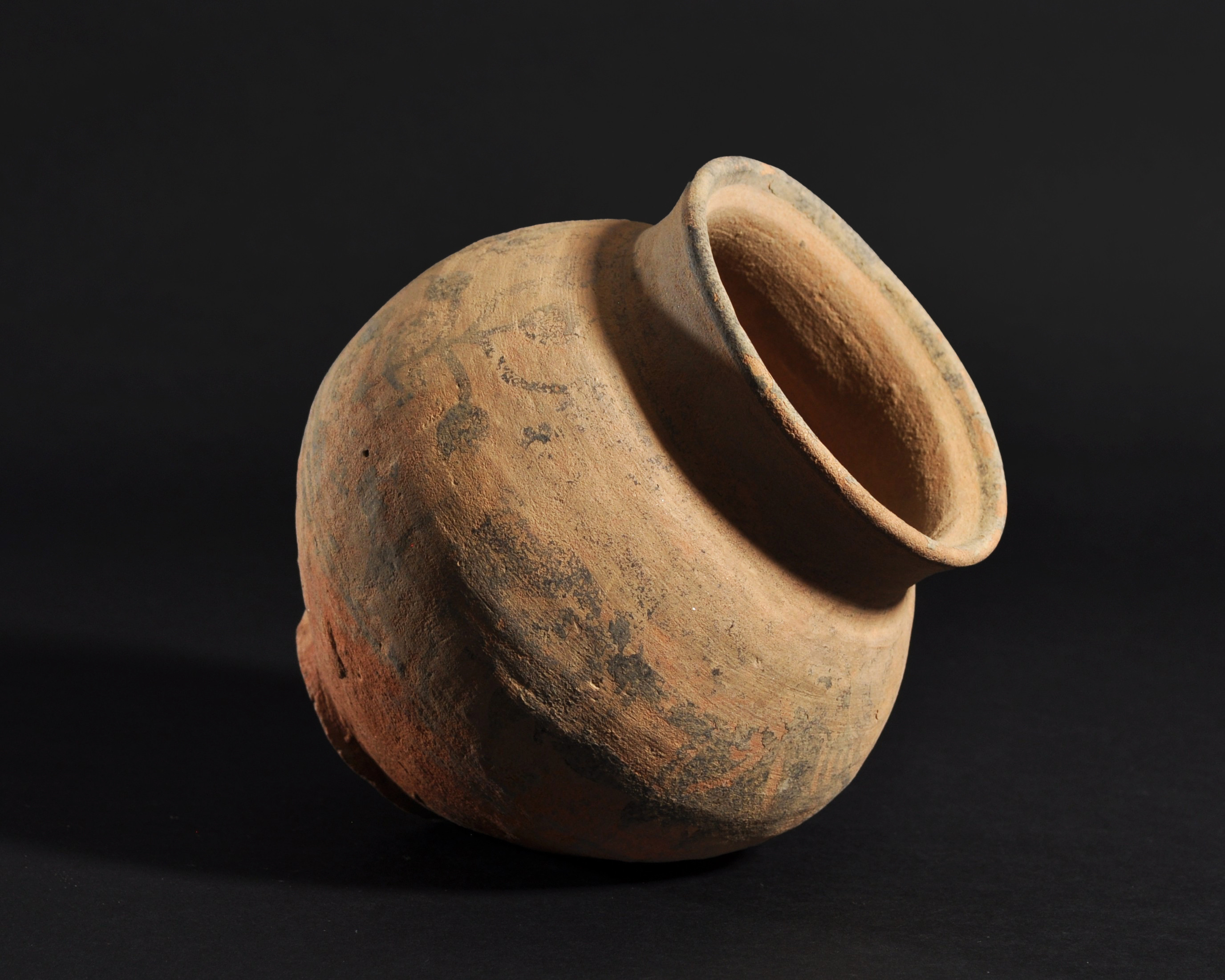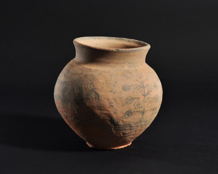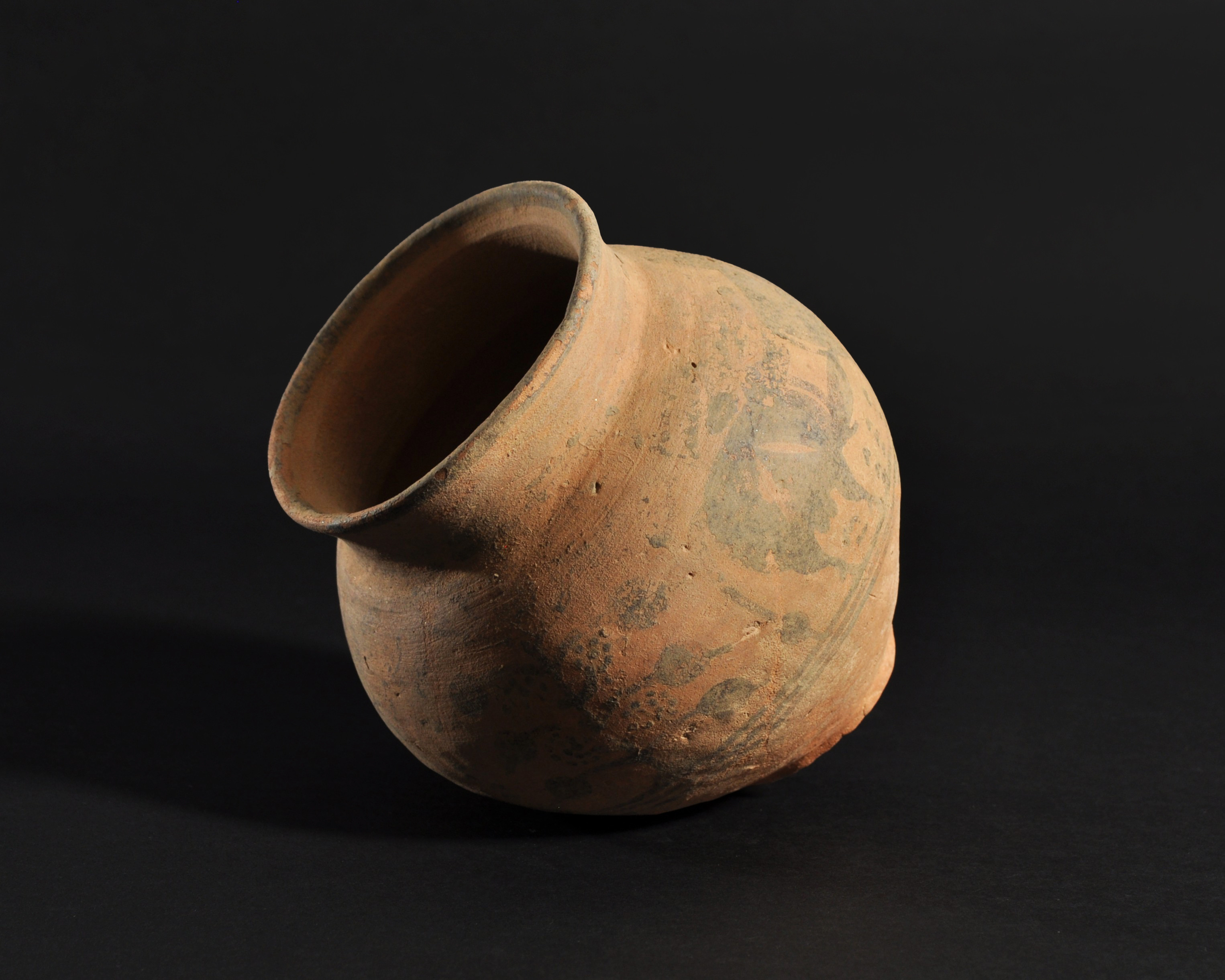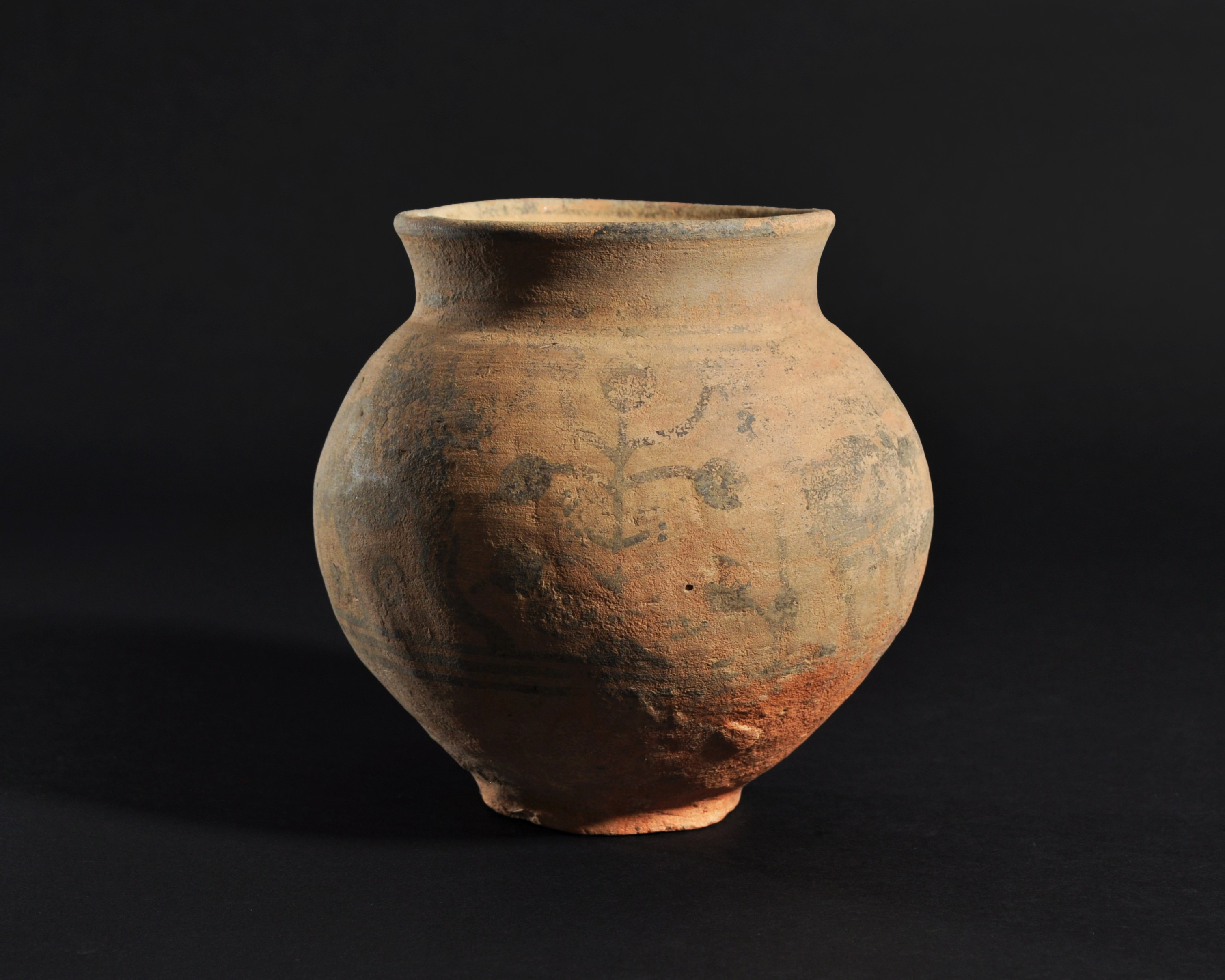 ARQUEOLOGÍA. MEDIO ORIENTE. Valle del Indo. Vasija con decoración pintada de cuadrúpedos entre vegetación (III-II milenio a.C.). Cerámica. Altura 14 cm. Presenta faltas pictóricas.
