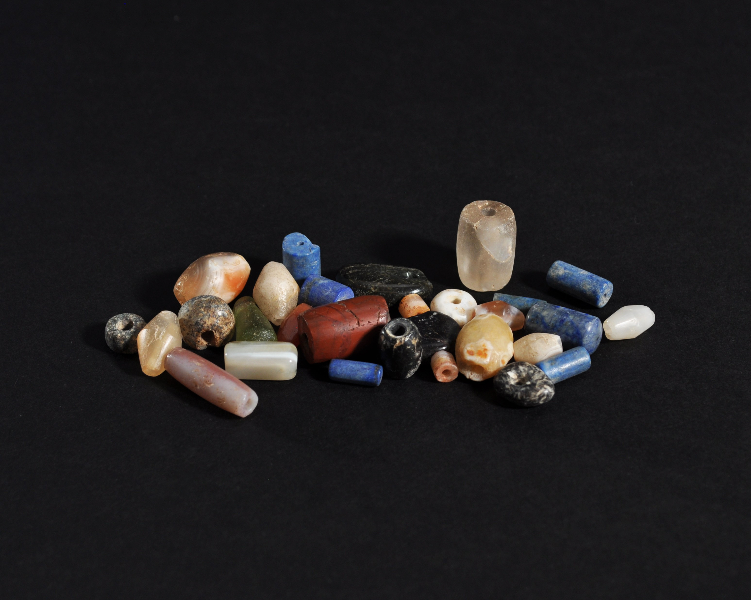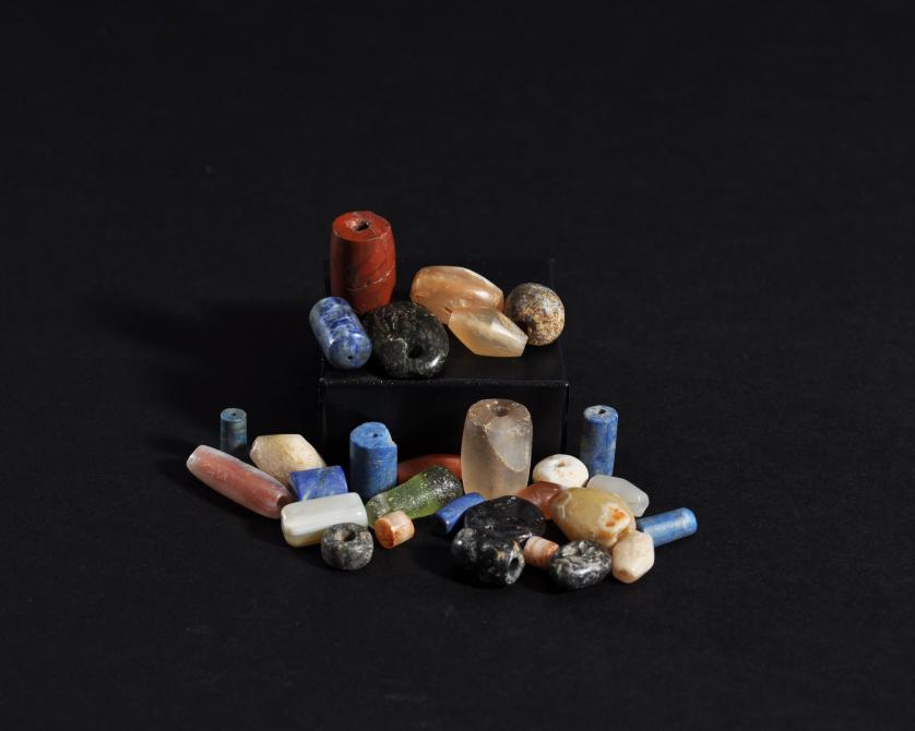 ARQUEOLOGÍA. CUENCA ORIENTAL DEL MEDITERRÁNEO. Lote de 29 cuentas tubulares, bicónicas y esféricas. Diversas épocas y culturas. Piedra pulimentada. Longitud de 0,5 a 2,3 cm.