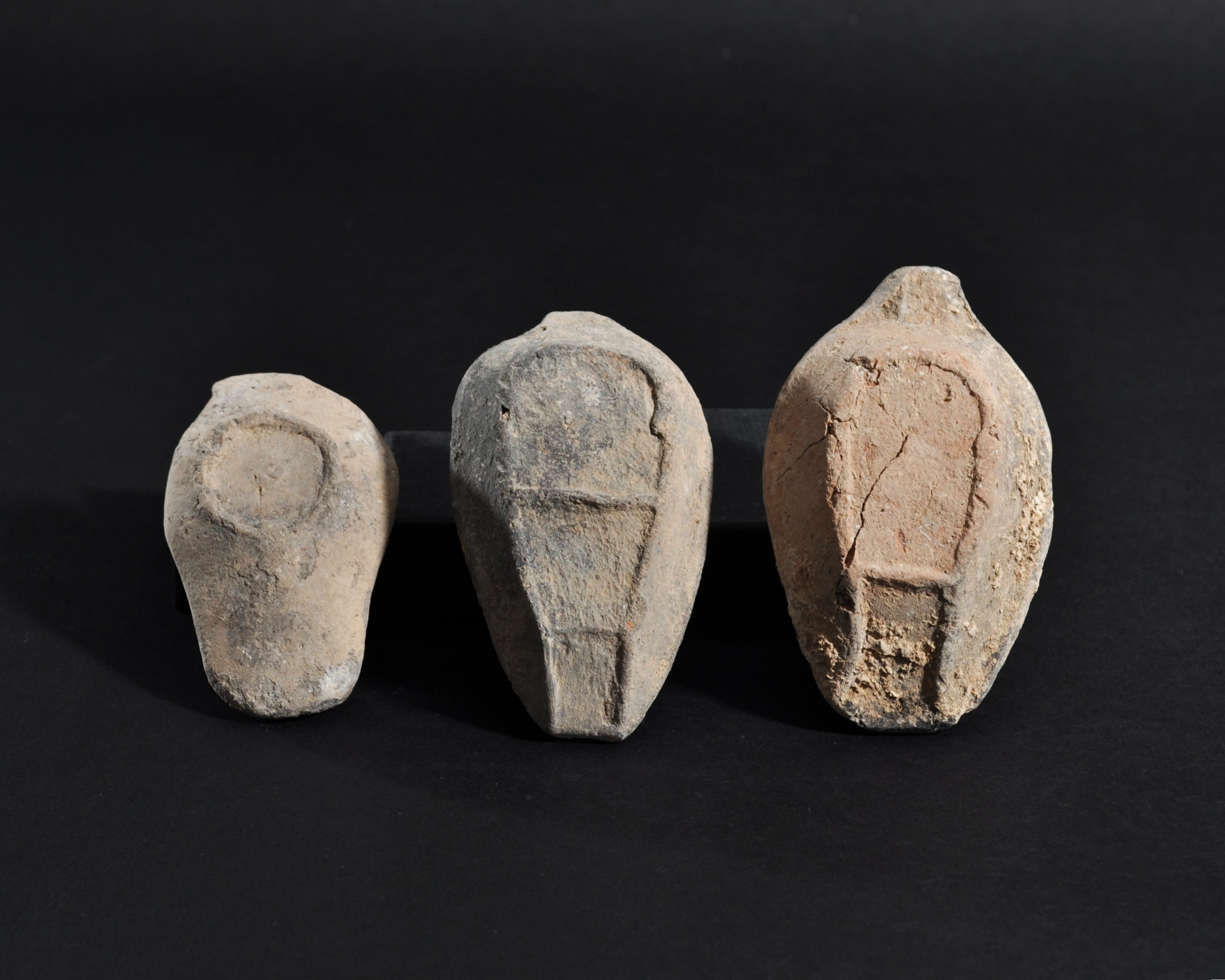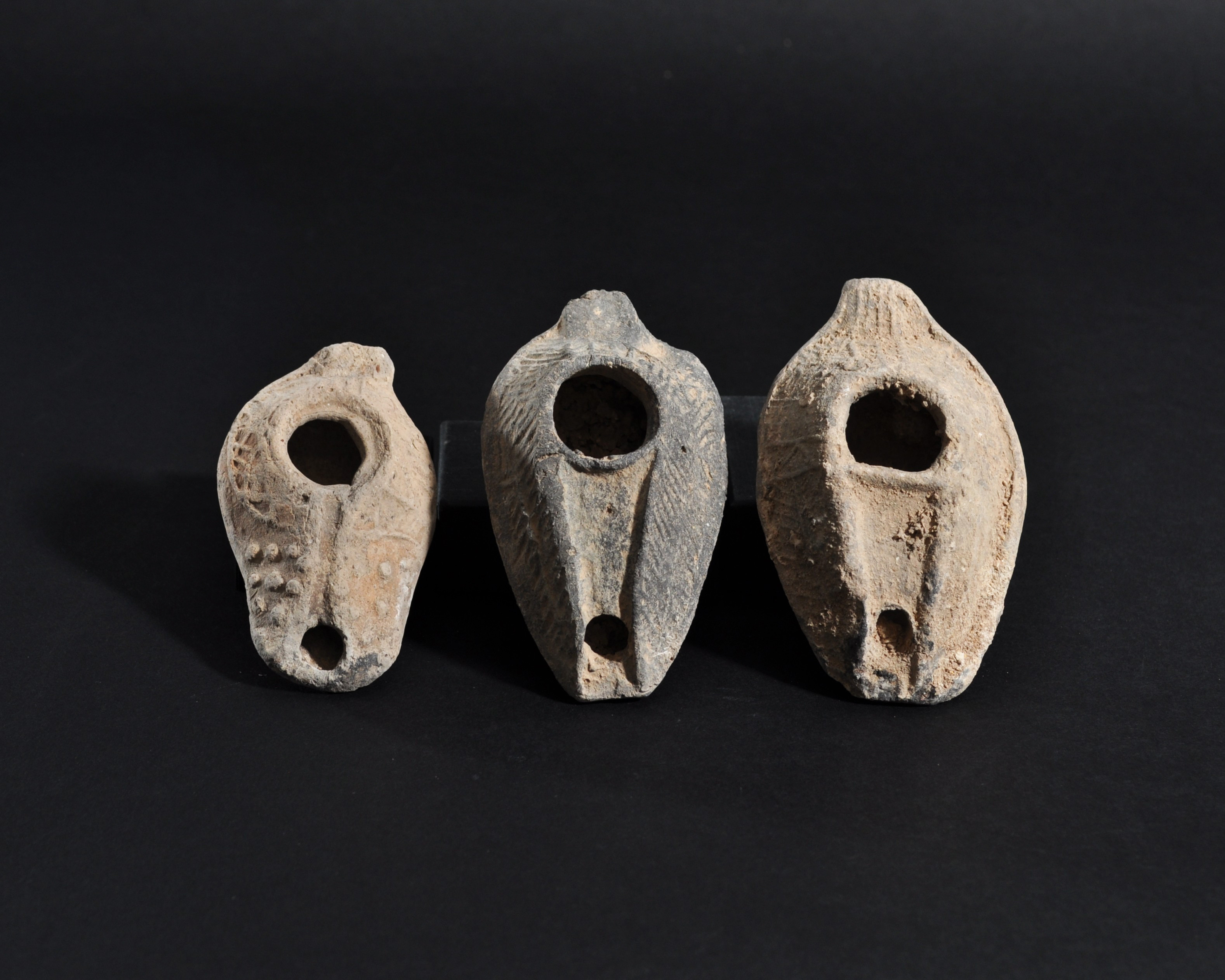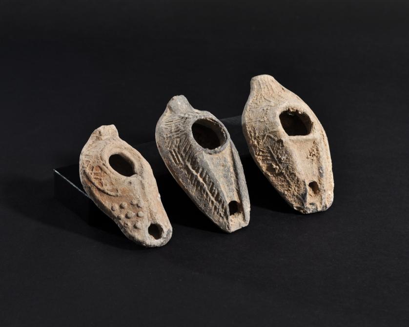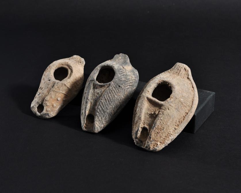 ARQUEOLOGÍA. ROMA. Anatolia. Lote de 3 lucernas con decoración geométrica (ss. II-IV d.C.). Terracota. Longitud de 8,6 a 10,5 cm.