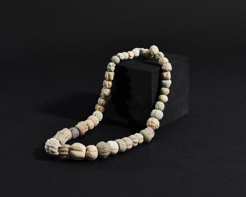ARQUEOLOGÍA. ROMA. Collar de cuentas de perfil gallonado (ss. I-IV d.C.). Cerámica. Longitud 44,5 cm. Ensamblaje moderno. Solo envío a España.