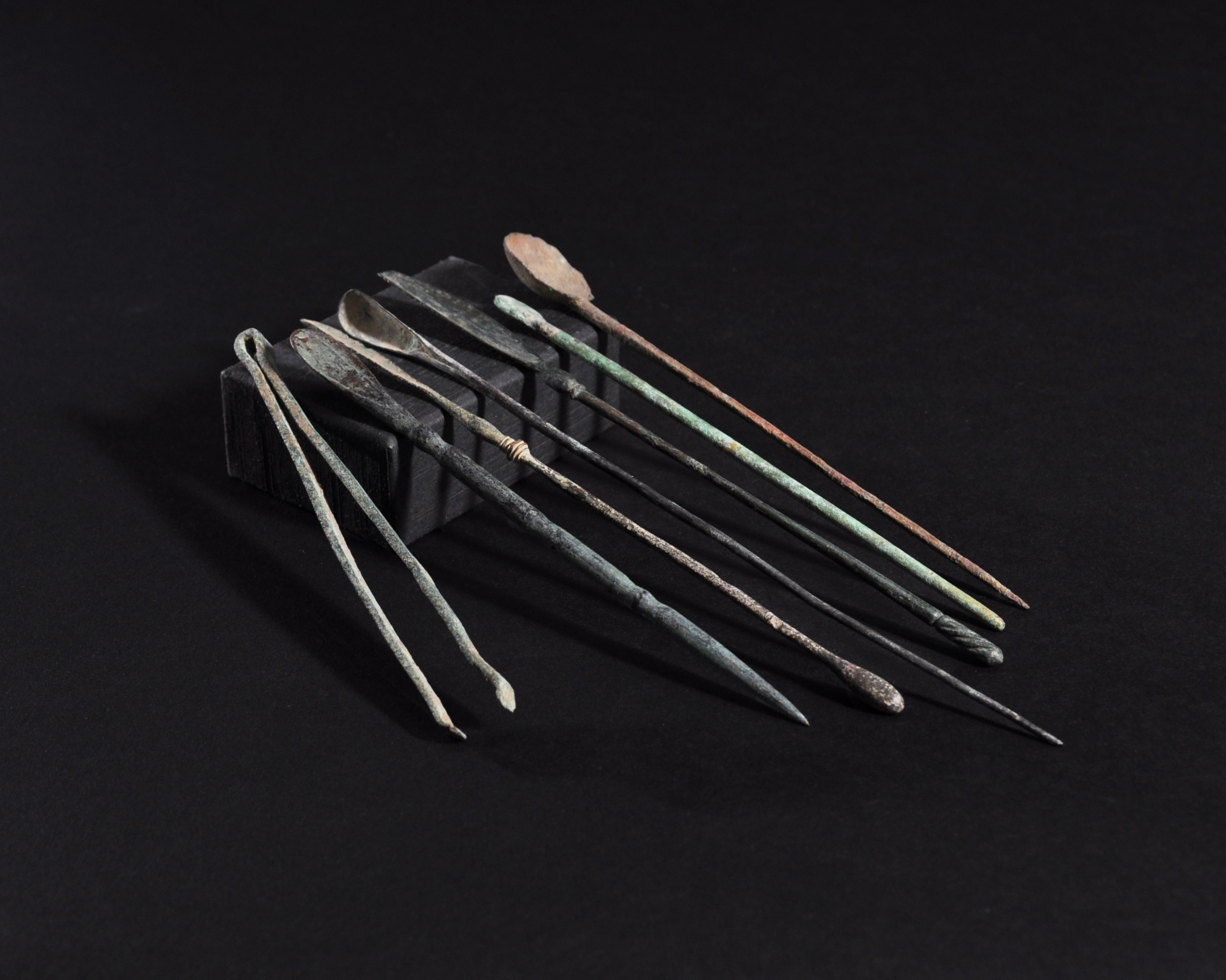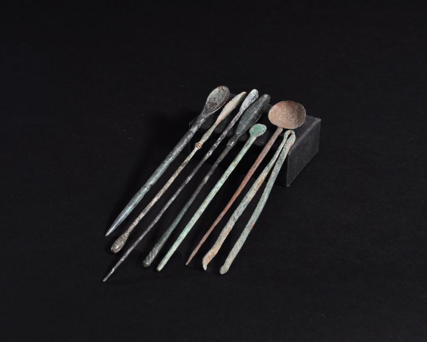ARQUEOLOGÍA. ROMA. Lote de 7 instrumentos médicos (ss. I-IV d.C.). Bronce. Longitud de 11 a 17,4 cm. Solo envío a España.