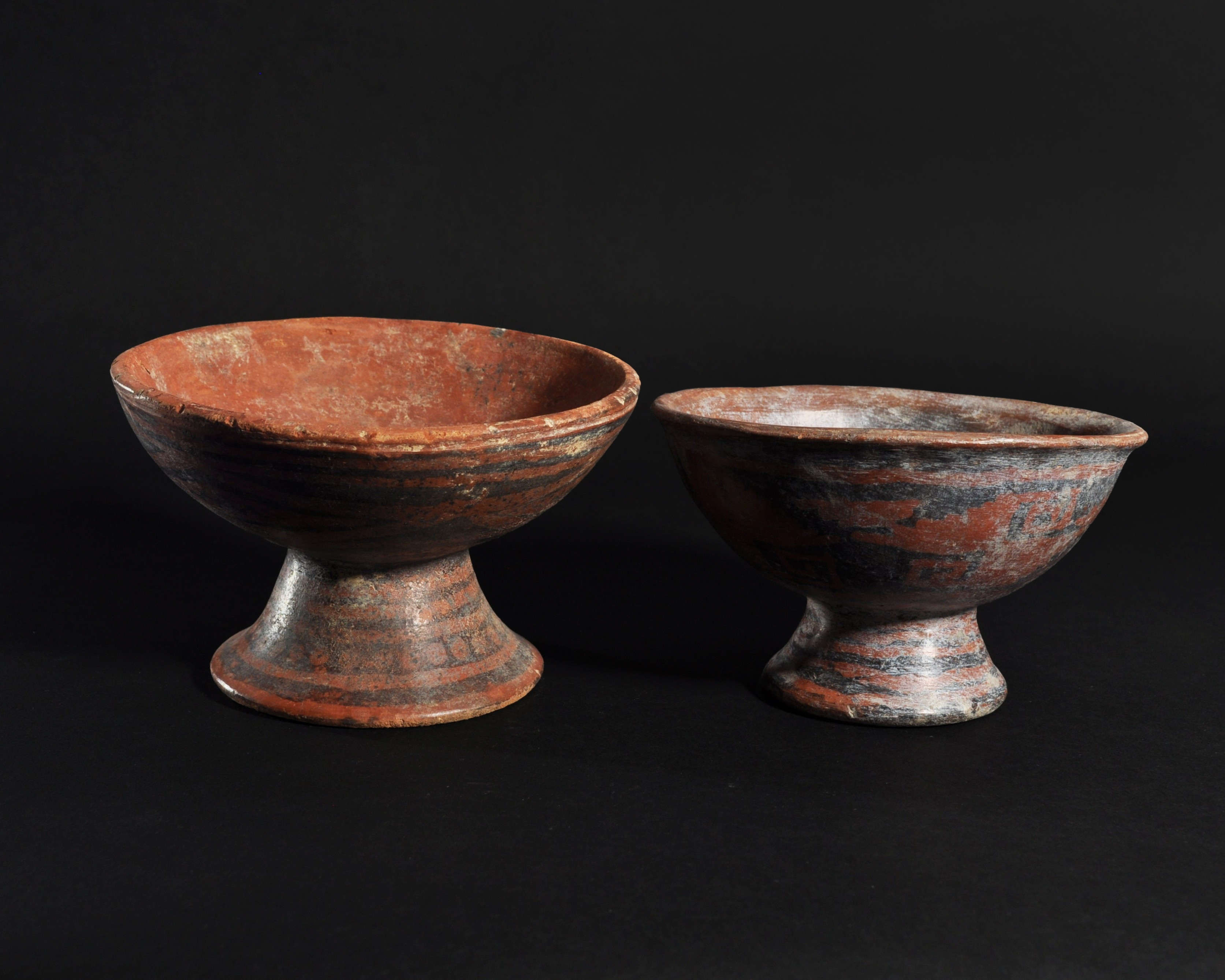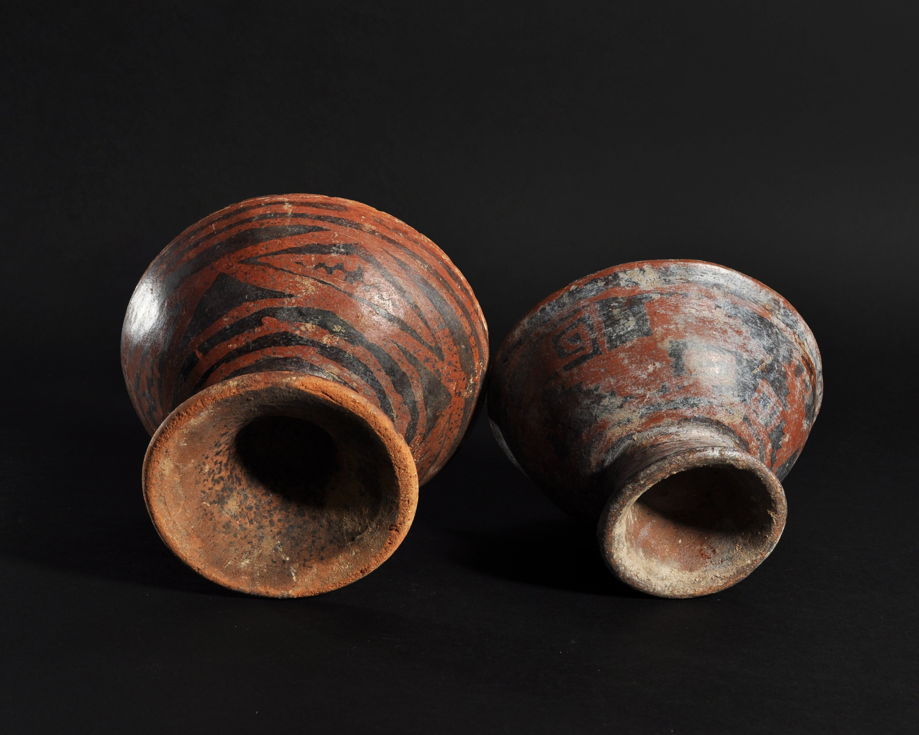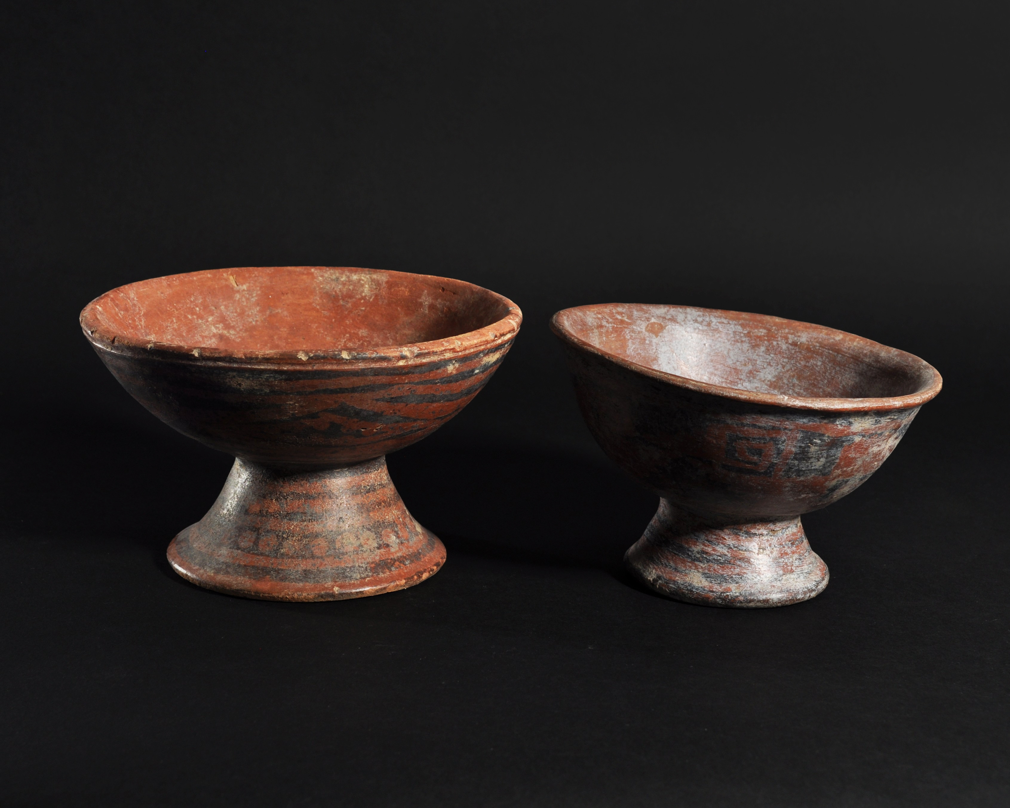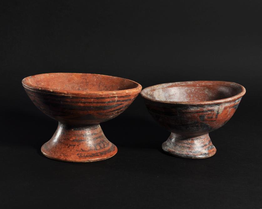 ARQUEOLOGÍA. PREHISPÁNICO. Cultura Nariño. Lote de 2 cuencos con base acampanada y decoración geométrica pintada (800-1500). Cerámica. Altura de 10 a 10,5 cm.