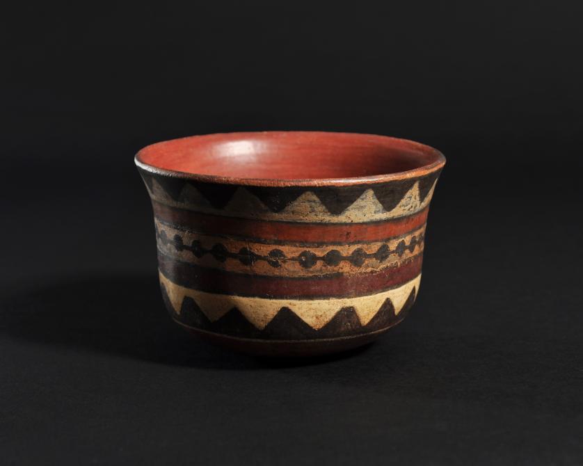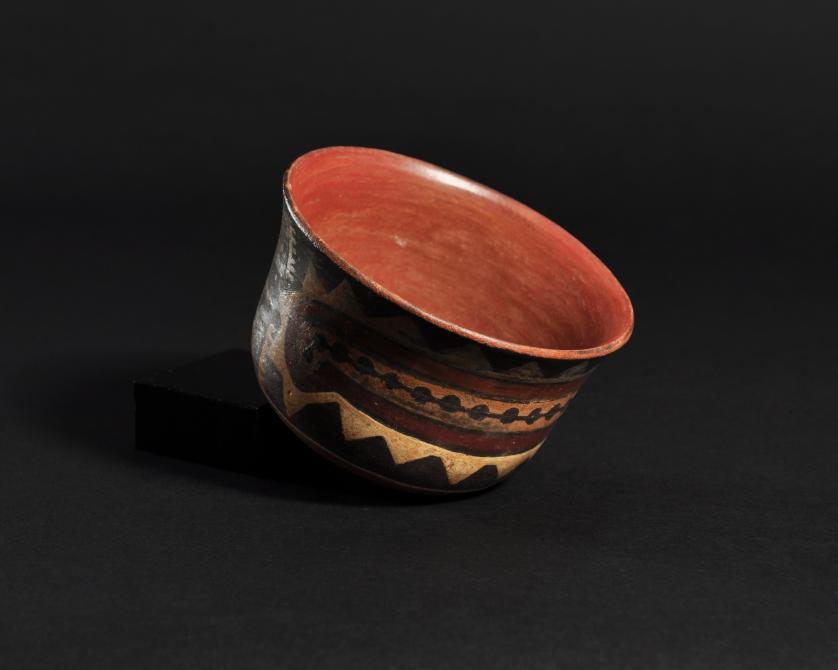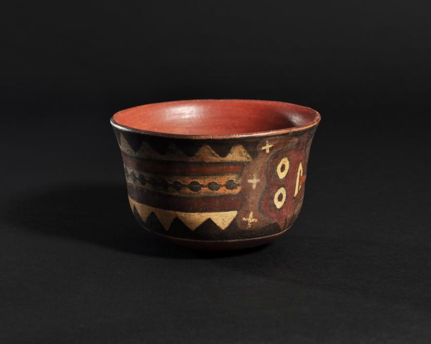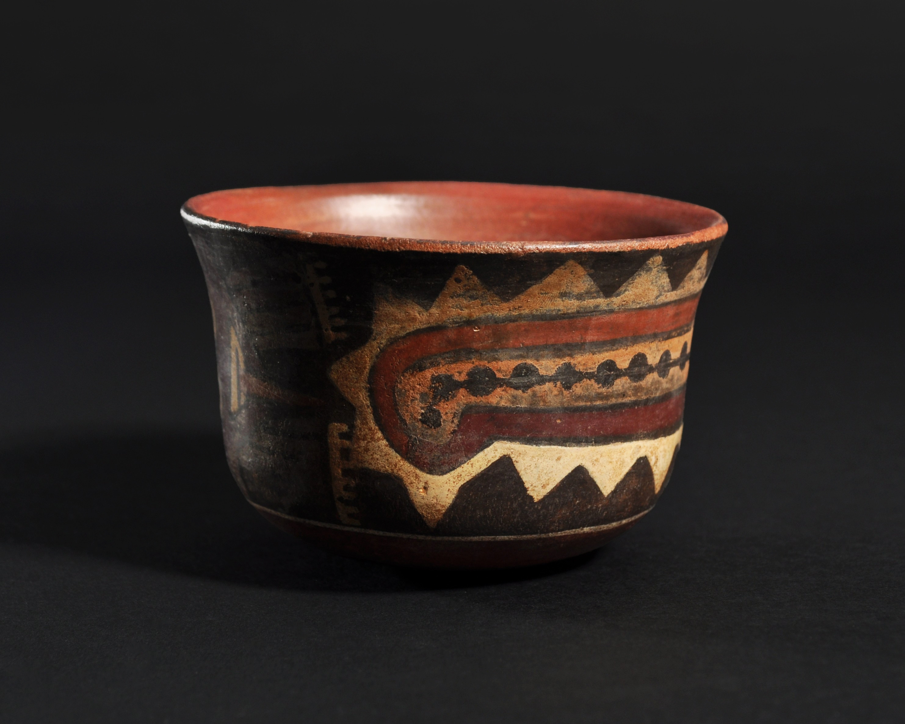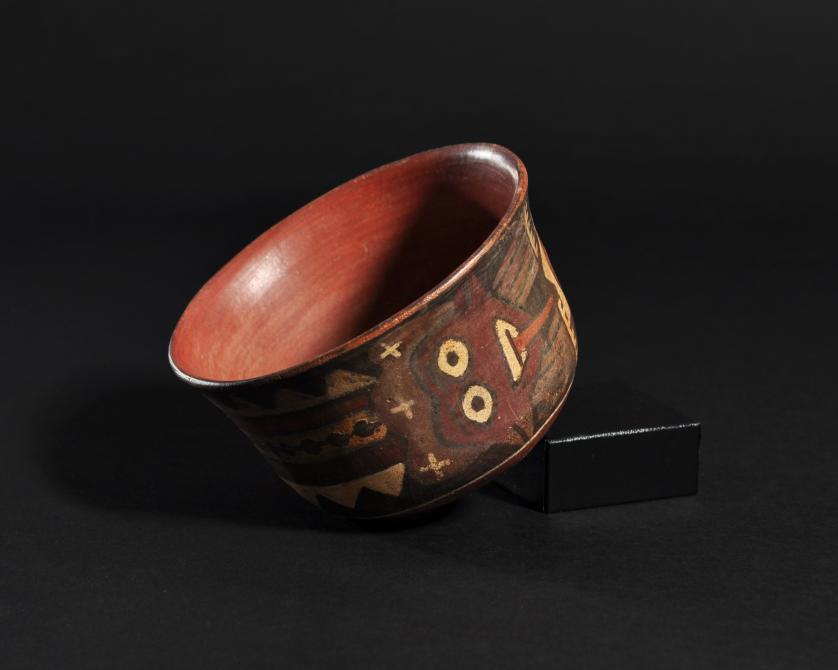 ARQUEOLOGÍA. PREHISPÁNICO. Cultura Nazca. Cuenco con decoración pintada de criatura serpentina (100-700). Cerámica. Altura 7 cm. Diámetro 10,2 cm. Adjunta certificado de termoluminiscencia QED Laboratoire.