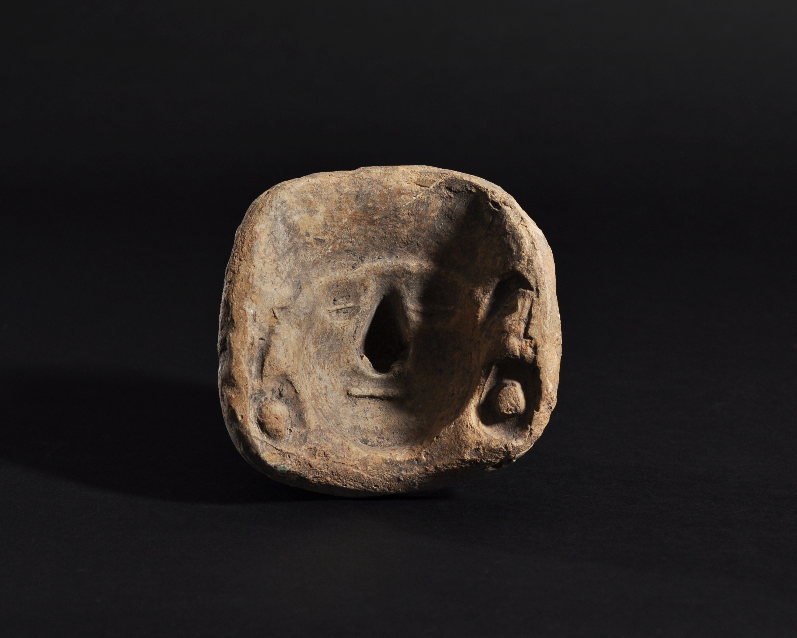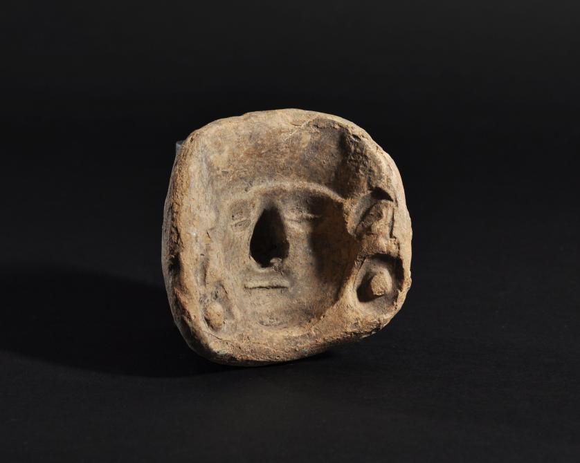 ARQUEOLOGÍA. PREHISPÁNICO. Región andina. Molde facial. Cerámica. Altura 8,5 cm.