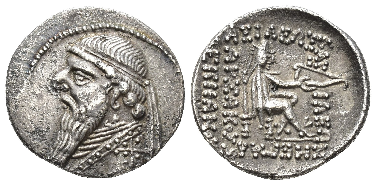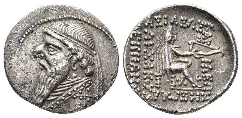 GRECIA ANTIGUA. PARTIA. Mitrídates II (121-91 a.C.). Dracma. A/ Busto diademado a izq. R/ Arquero entronizado a der. AR 3,94 g. 19,1 mm. SPP-27. Pequeñas erosiones. MBC/MBC+.