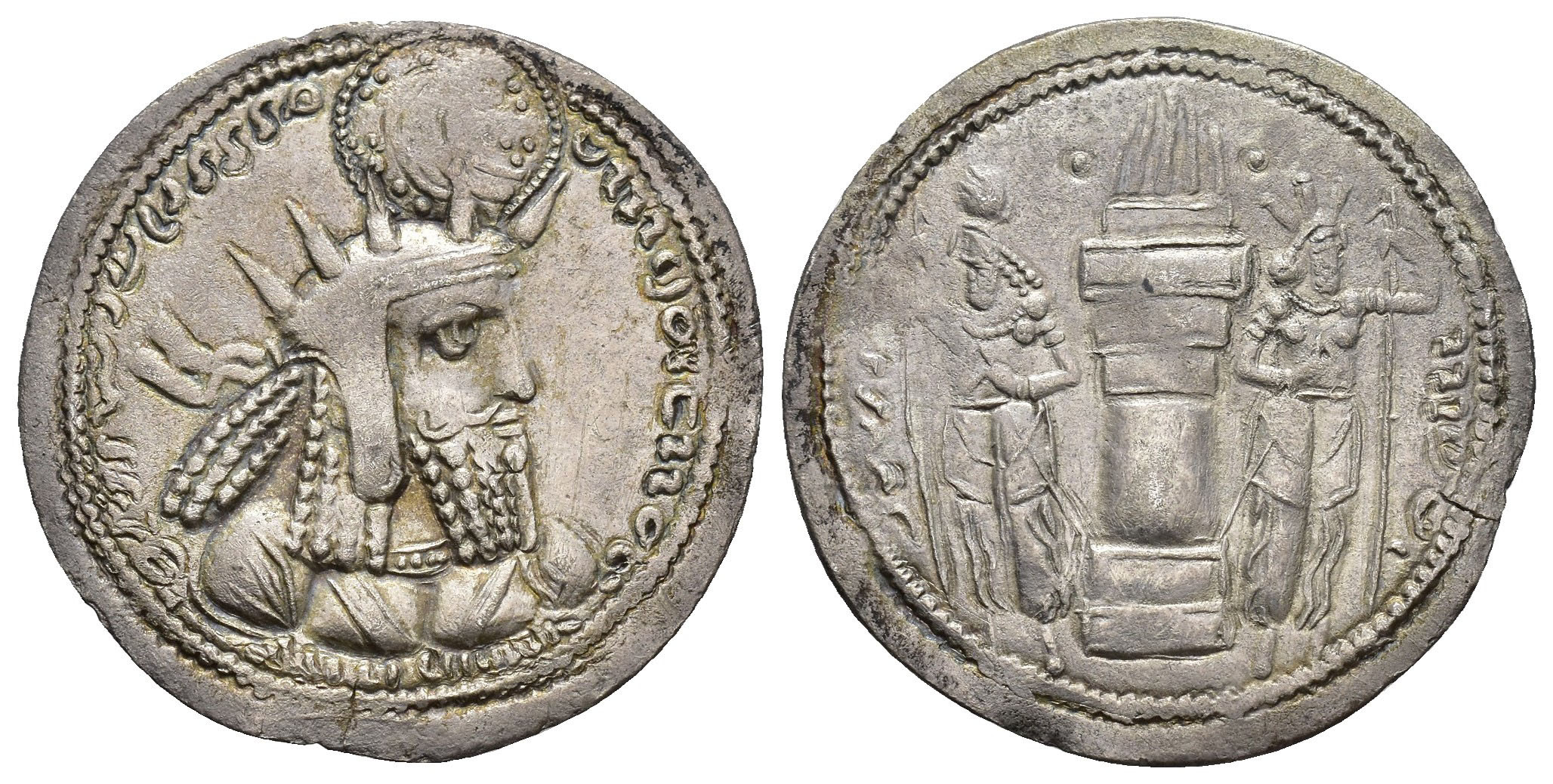 GRECIA ANTIGUA. IMPERIO SASÁNIDA. Bahram I (273-276). Dracma. AR 3,72 g. 27,6 mm. SES-18. Rayitas. MBC+.