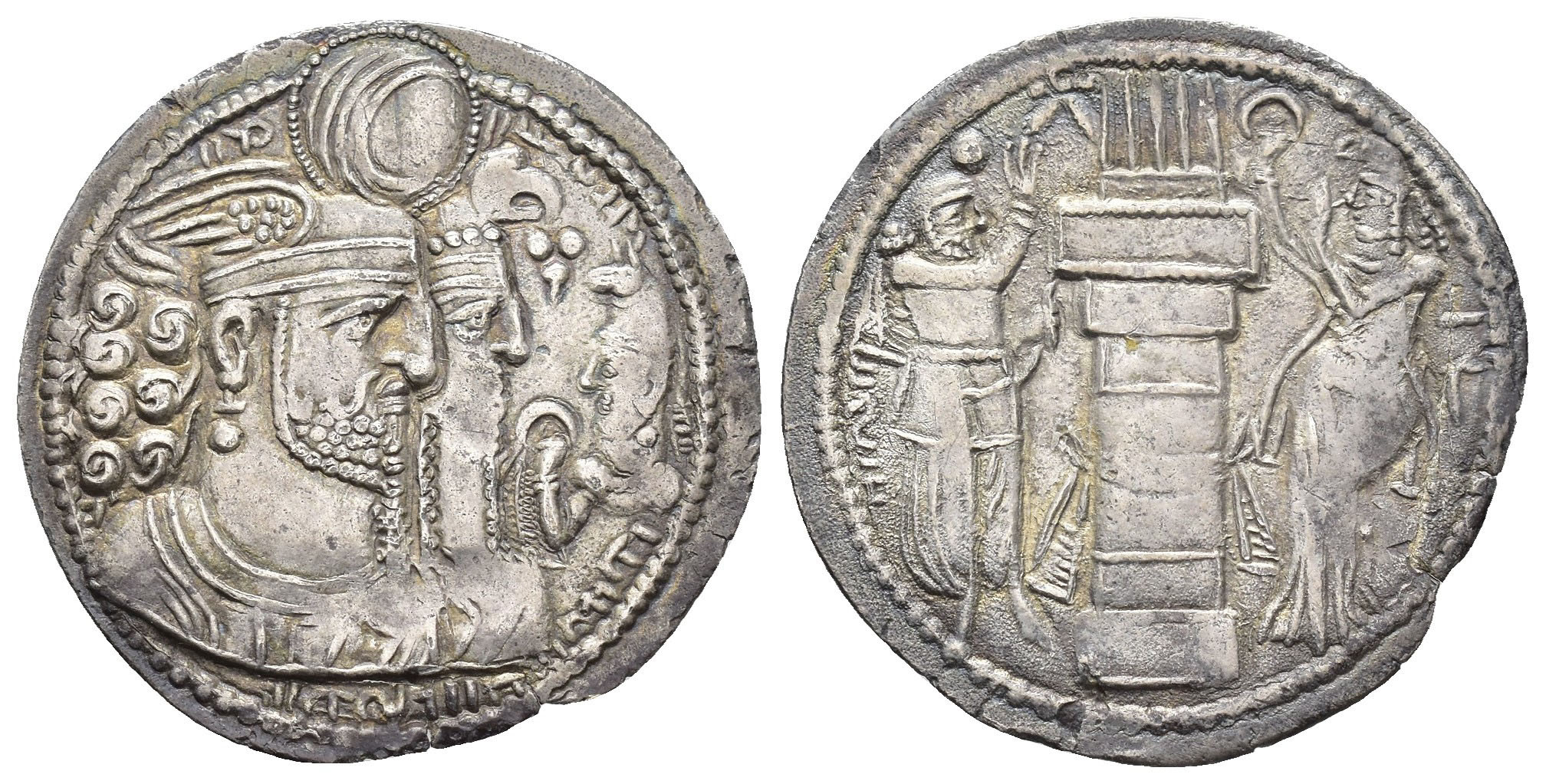 GRECIA ANTIGUA. IMPERIO SASÁNIDA. Bahram II (276-293). Dracma. AR 3,75 g. 29 mm. SES-21. Rotura al borde. MBC+.