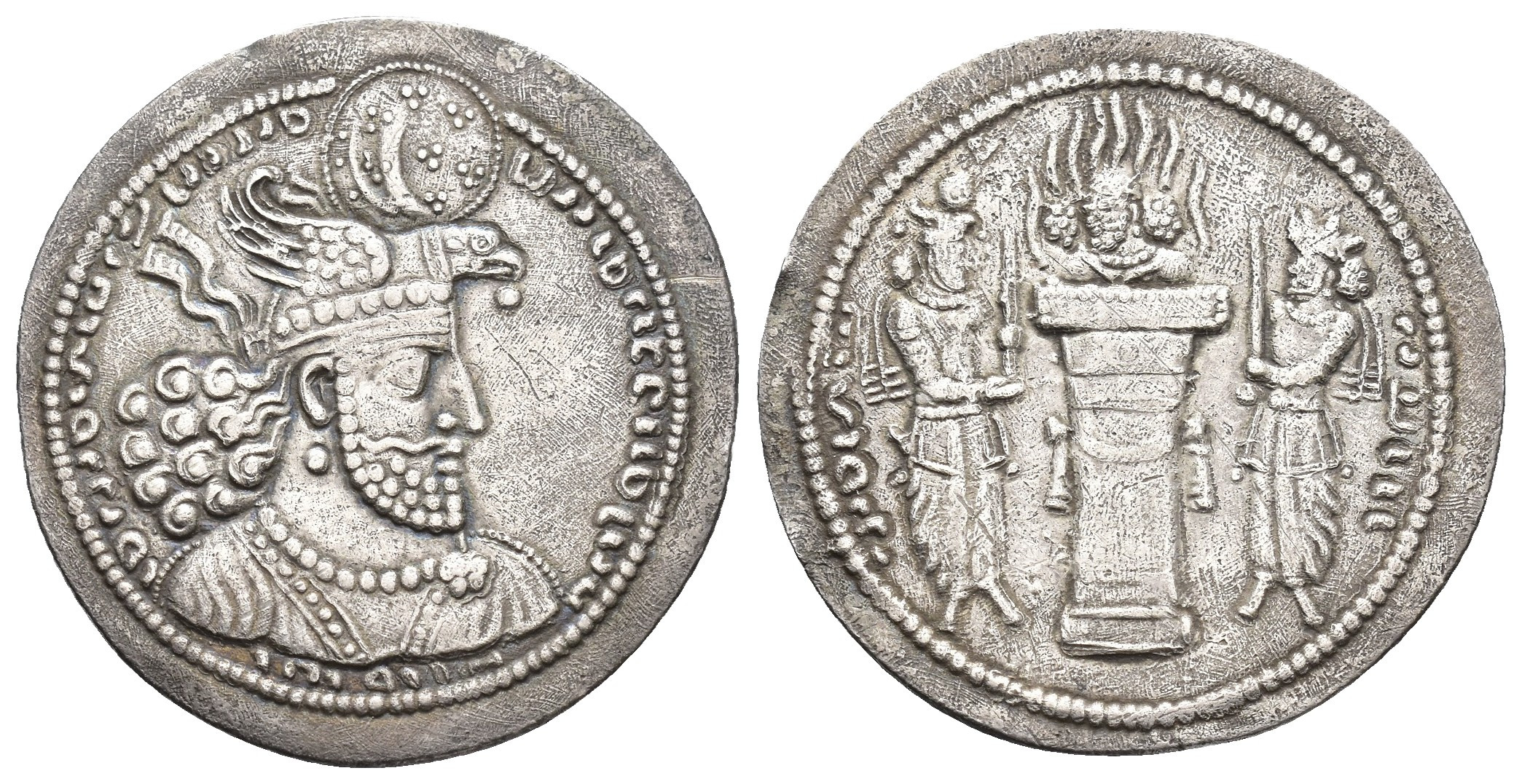 GRECIA ANTIGUA. IMPERIO SASÁNIDA. Hormizd II (303-309). Dracma. AR 3,85 g. 29 mm. SES-27. Pequeñas marcas. MBC+/MBC.