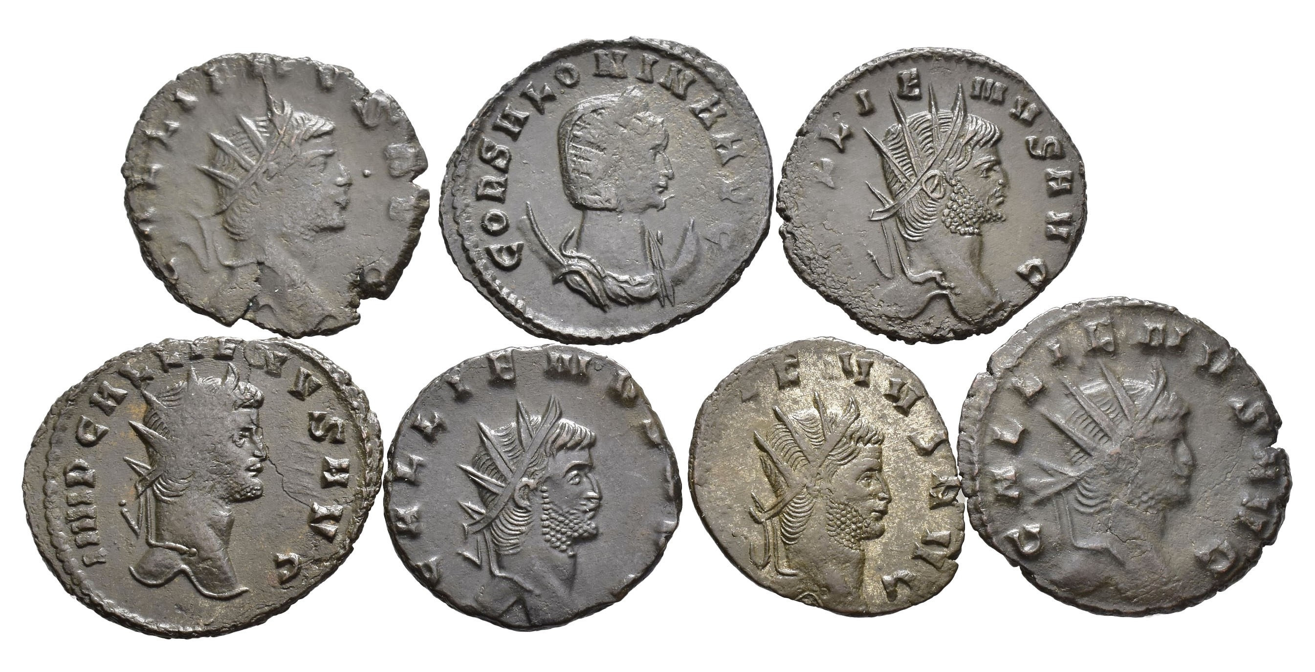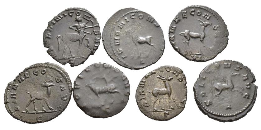 IMPERIO ROMANO. Lote de 7 antoninianos: 6 de Galieno y uno de Salonina. Todos con reversos de animales. MBC/EBC-.
