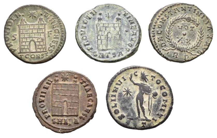 IMPERIO ROMANO. Lote de 5 follis módulo pequeño. MBC+/MBC-.