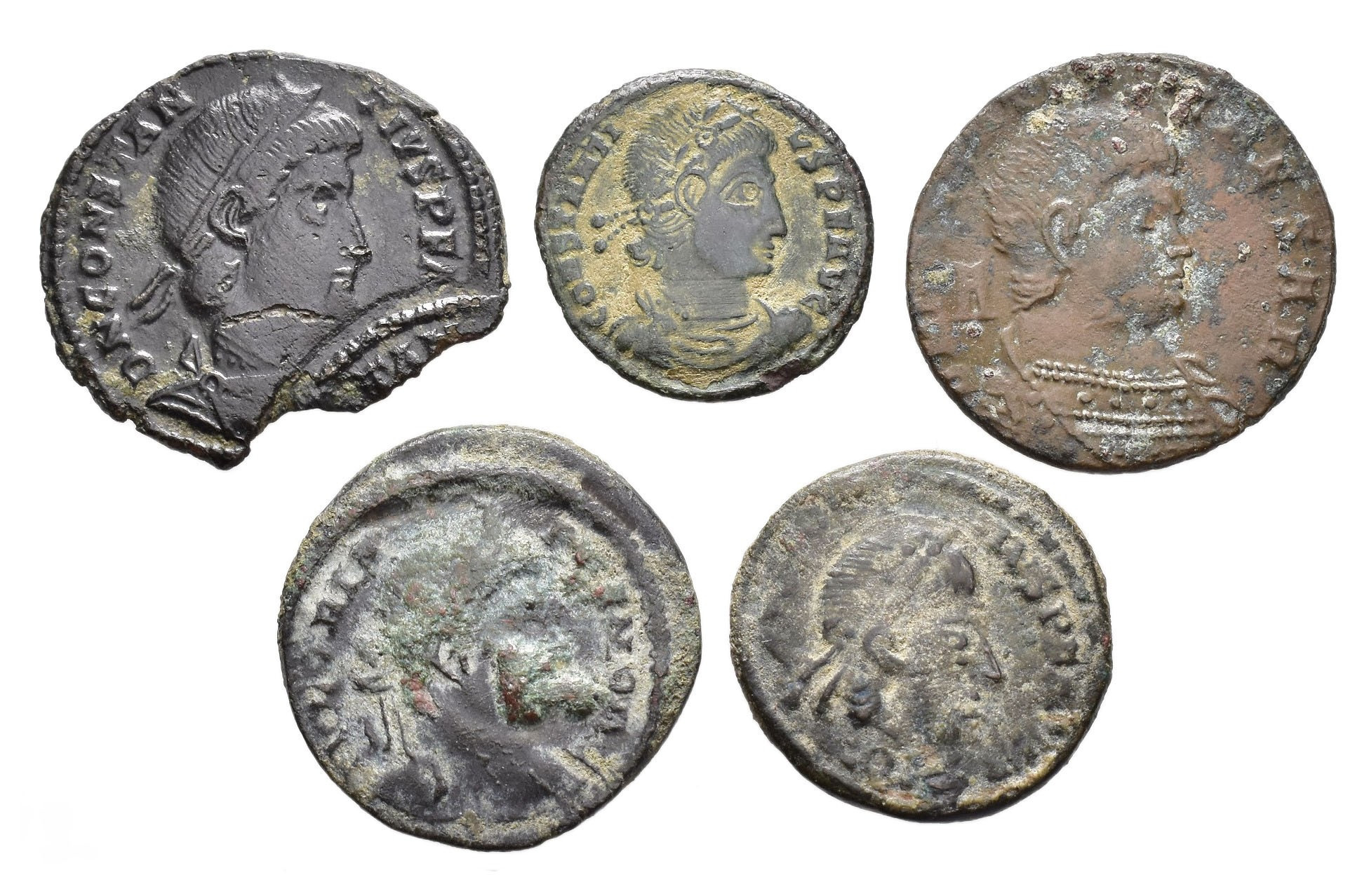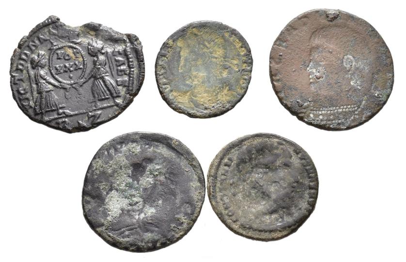 IMPERIO ROMANO. Lote de 5 bronces: 4 incusos y uno con doble acuñación y rotura al borde. BC+/MBC.