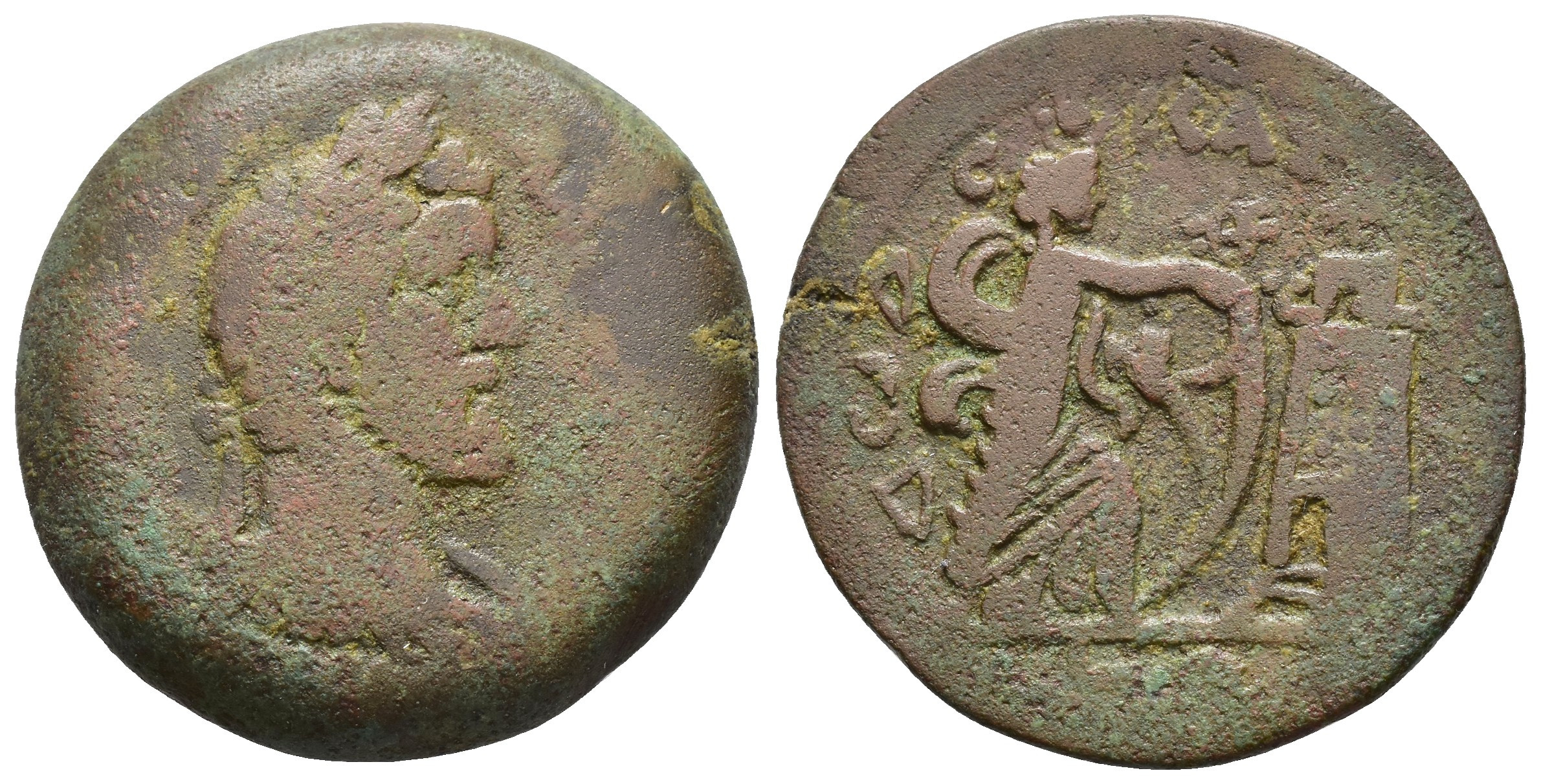 IMPERIO ROMANO. ADRIANO. AE. Alejandría (126-127). A/ Cabeza laureada, drapeada y acorazada a der., alrededor ley. griega no visible. R/ Isis Faria avanzando a der. con sistro y vela, delante faro de Alejandría; alrededor fecha (L EN)DEKAT(OV) (año 11), muy poco visible. AE 21,66 g. 32 mm. RPC-III.5671? RC/BC. Rara.