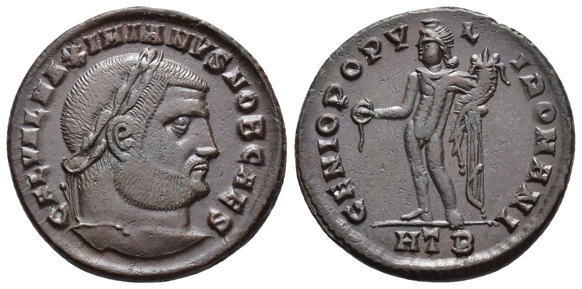 IMPERIO ROMANO. GALERIO MAXIMIANO. Follis. Heraclea (305-306). A/ Cabeza laureada a der.; GAL VAL MAXIMIANVS NOB CAES. R/ Genio del pueblo romano a izq. Con pátera y cornucopia; GENIO POPVLI ROMANI. -/-//HTB. AE 8,94 g. 27 mm. RIC-24b. MBC+.