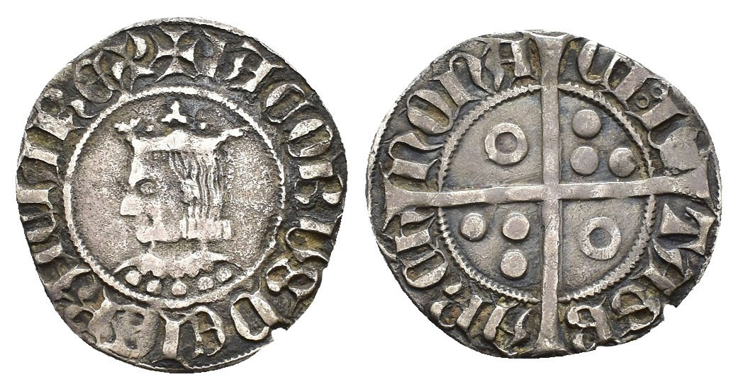 CORONA DE ARAGÓN. JAIME II EL JUSTO. Croat. Barcelona. Vestido con 5 orbes en vez de anillos. AR 2,69 g. 23,9 mm. IV-337 var. MBC-/MBC.