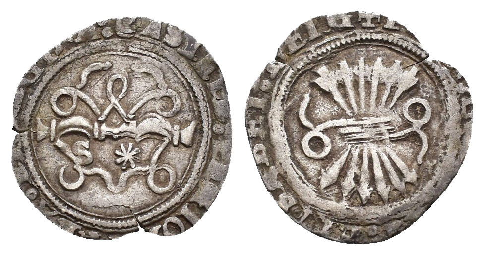 REYES CATÓLICOS. 1/2 real. Sevilla. A/ S y estrella. AR 1,66 g. 20,8 mm. AC-255. 2 finas grietas. MBC-.
