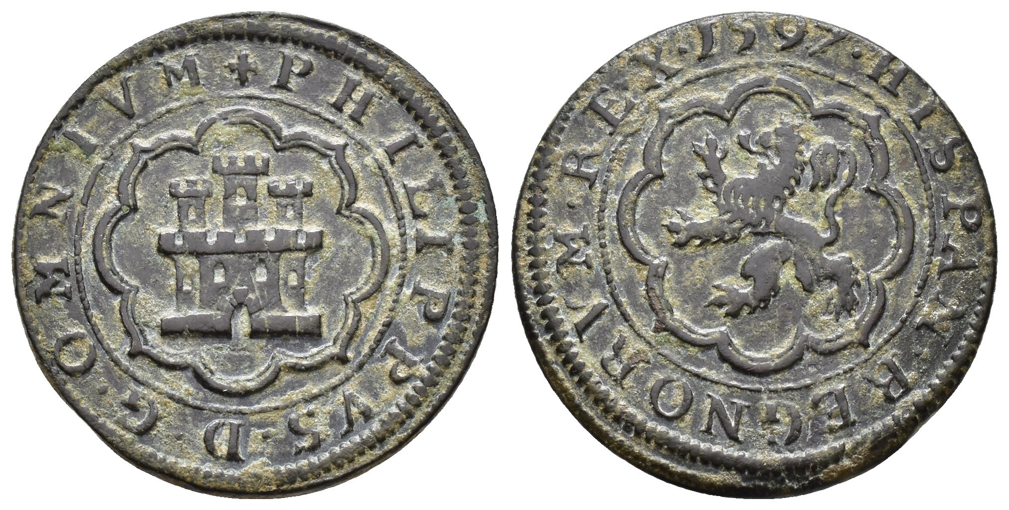 FELIPE II. 8 maravedís. 1597. Segovia. CU 6,17 g. 27,3 mm. AC-89. MBC+.
