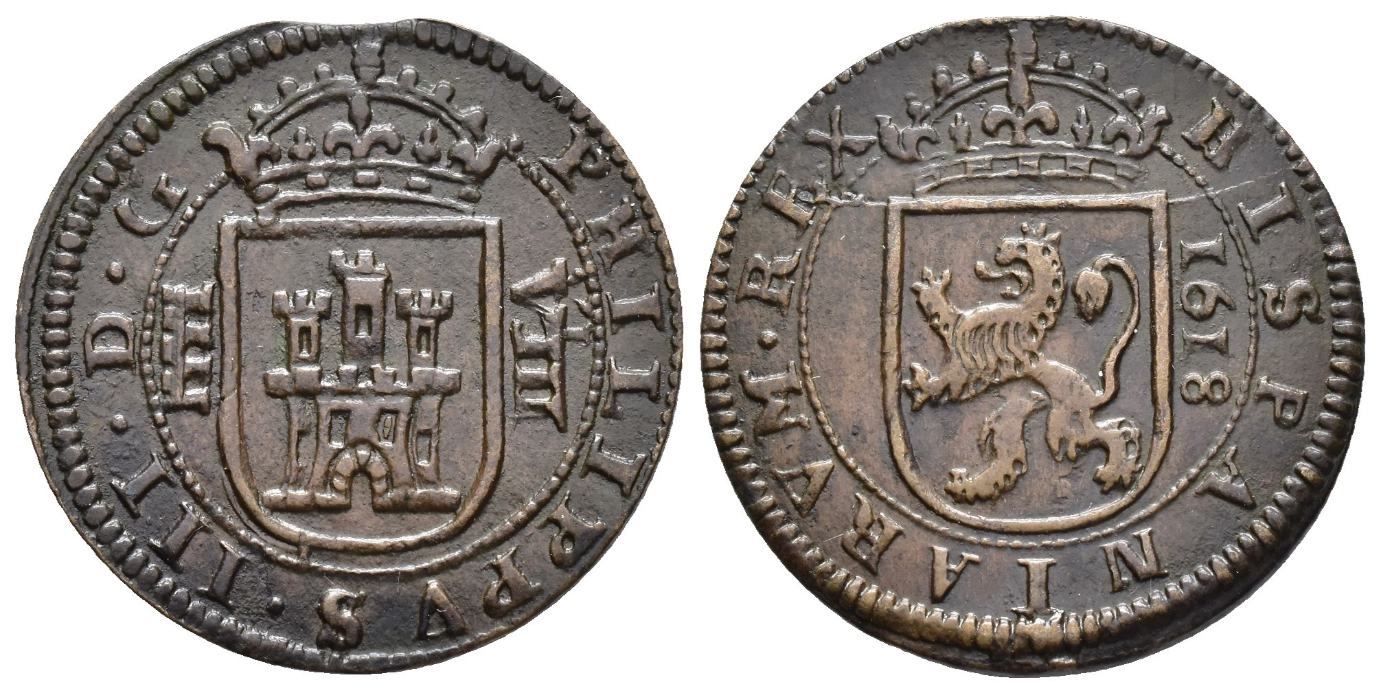 FELIPE III. 8 maravedís. 1618. Segovia. CU 5,93 g. 27 mm. AC-338. EBC-/MBC+.