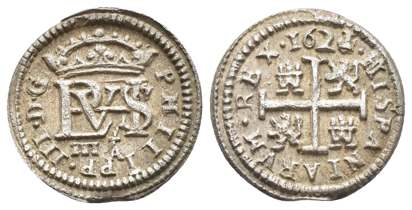 FELIPE III. 1/2 real. 1621/0.. Segovia. A. AR 1,67 g. 17,7 mm. AC-429. Golpe en canto y rayitas. MBC.