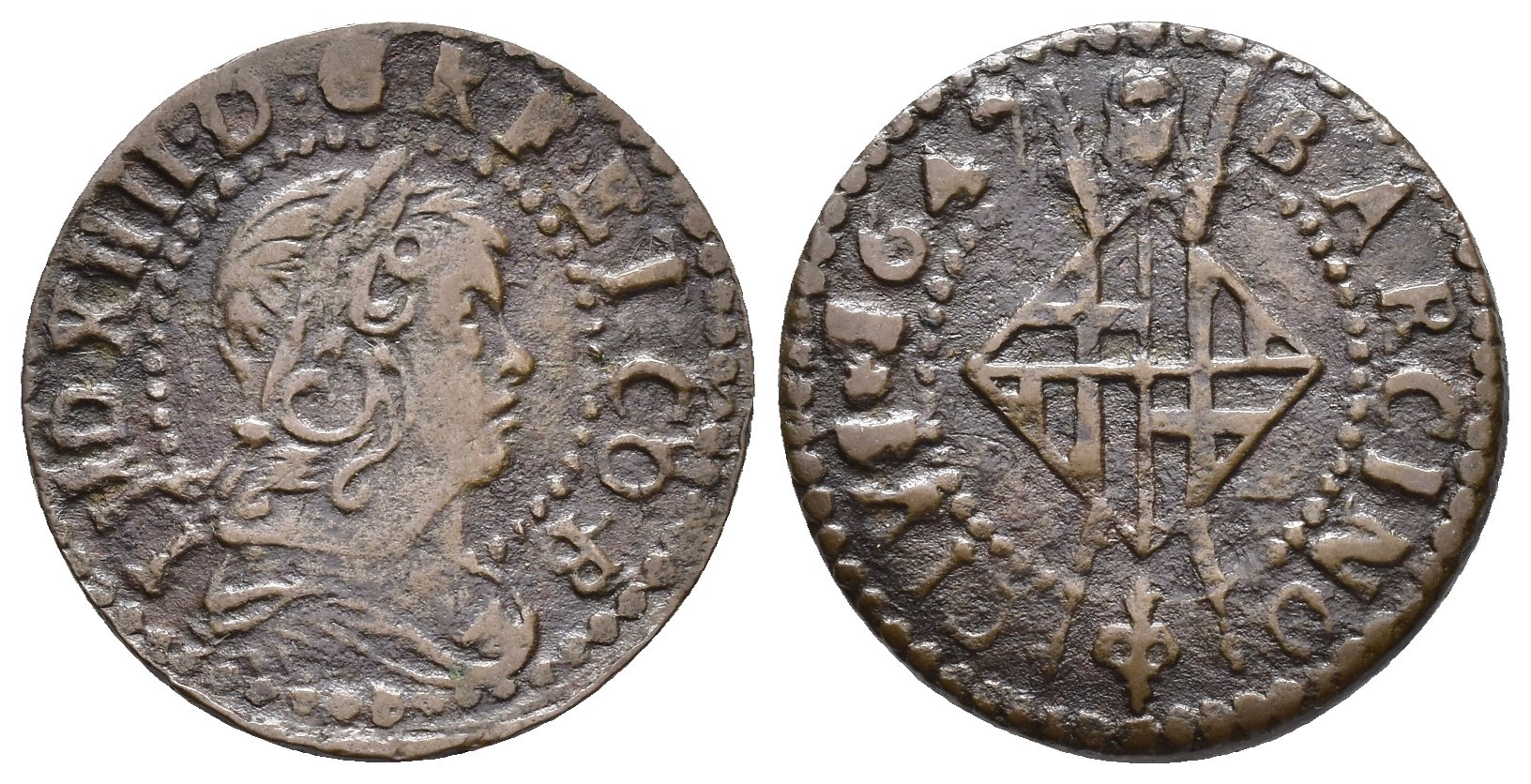 LUIS XIII. Sisé. 1647. Barcelona. CU 3,33 g. 22 mm. AC-51. MBC.