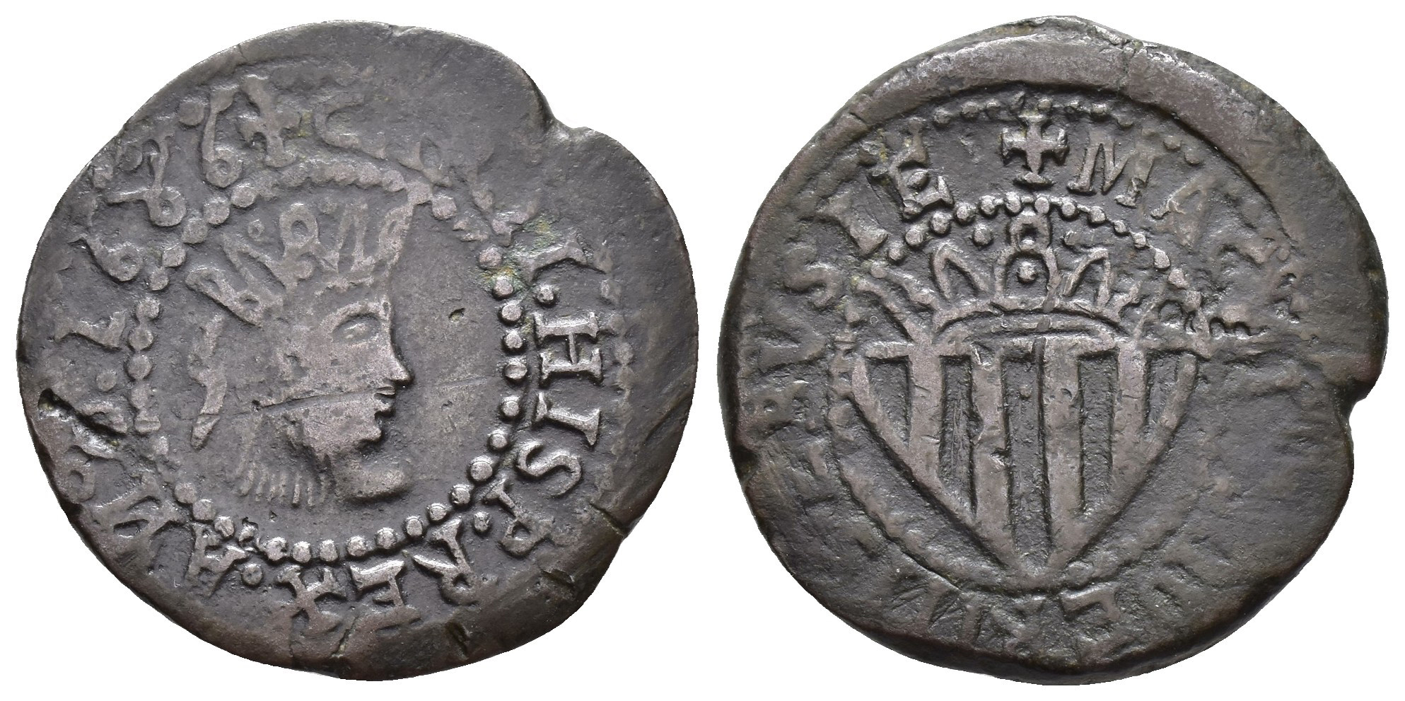 CARLOS II. Cinquena. 1686. Ibiza. CU 7,94 g. 26,2 mm. Cal. Fernando VII-22. Cospel irregular, golpe y raya. MBC-.