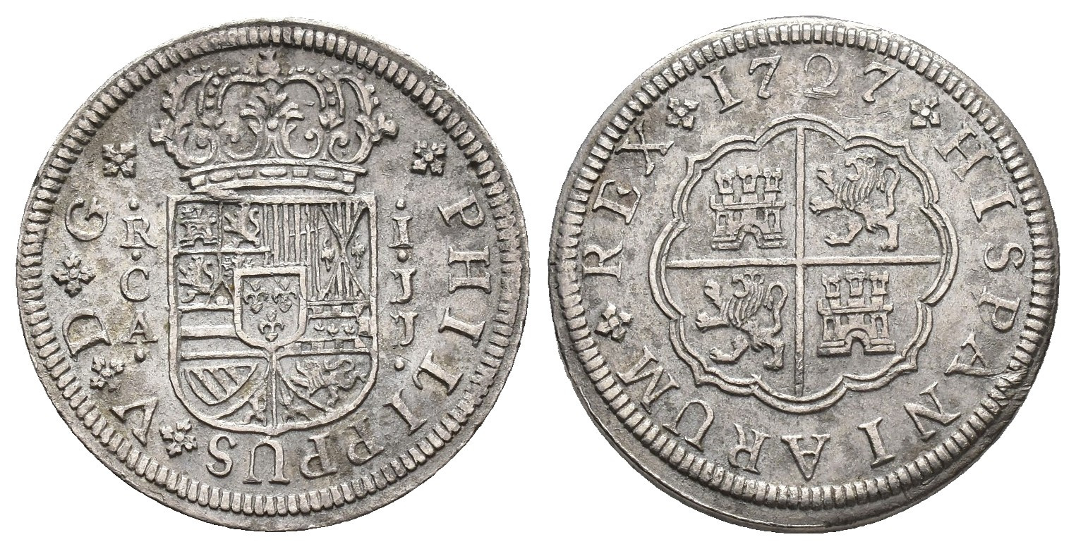 FELIPE V. Real. 1727. Cuenca. JJ. AR 2,78 g. 20,5 mm. VI-314; AC-353. MBC/MBC.