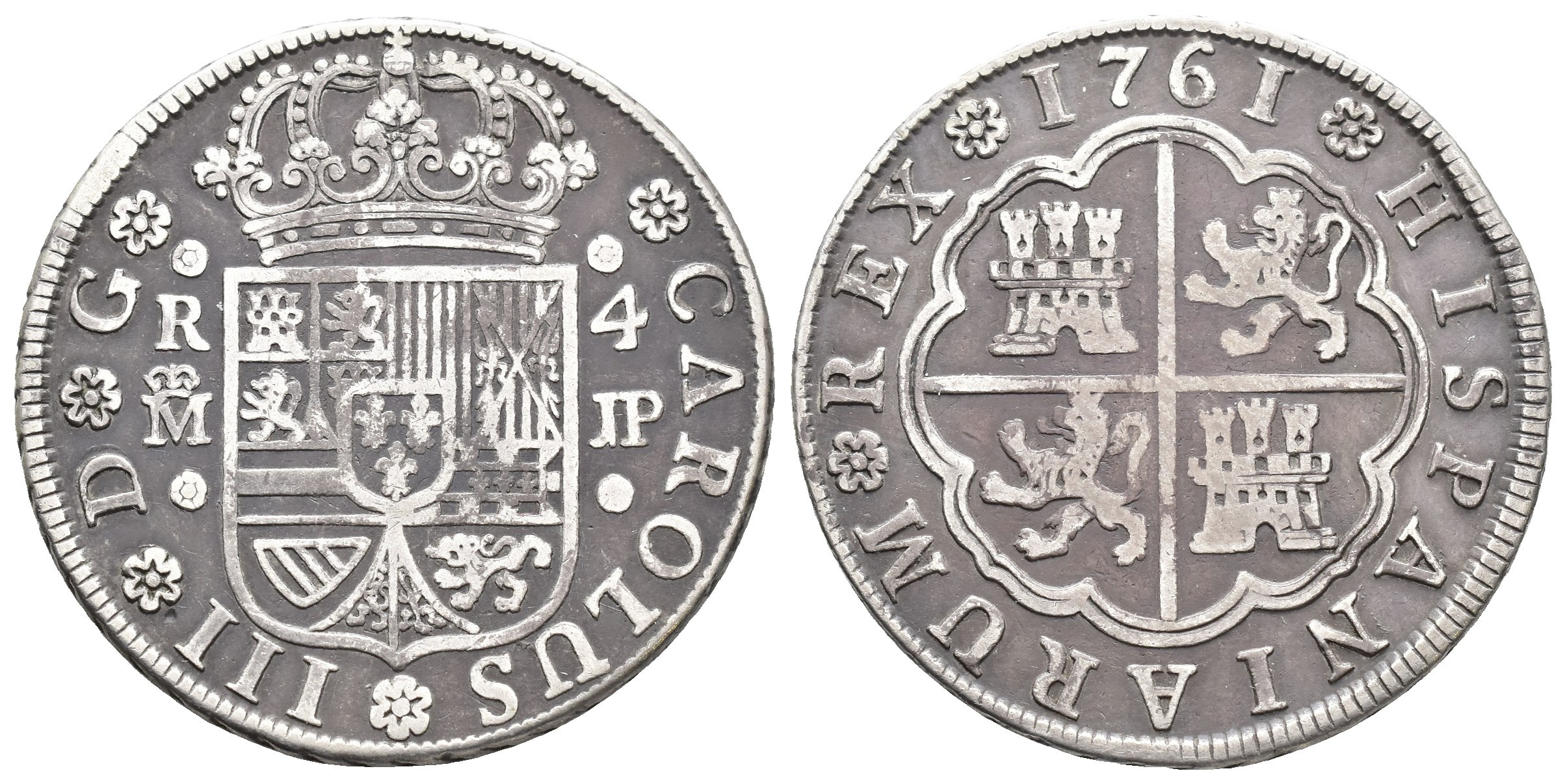 CARLOS III. 4 reales. 1761. Madrid. JP. AR 13,14 g. 32,4 mm. VI-727; AC-853. MBC-.