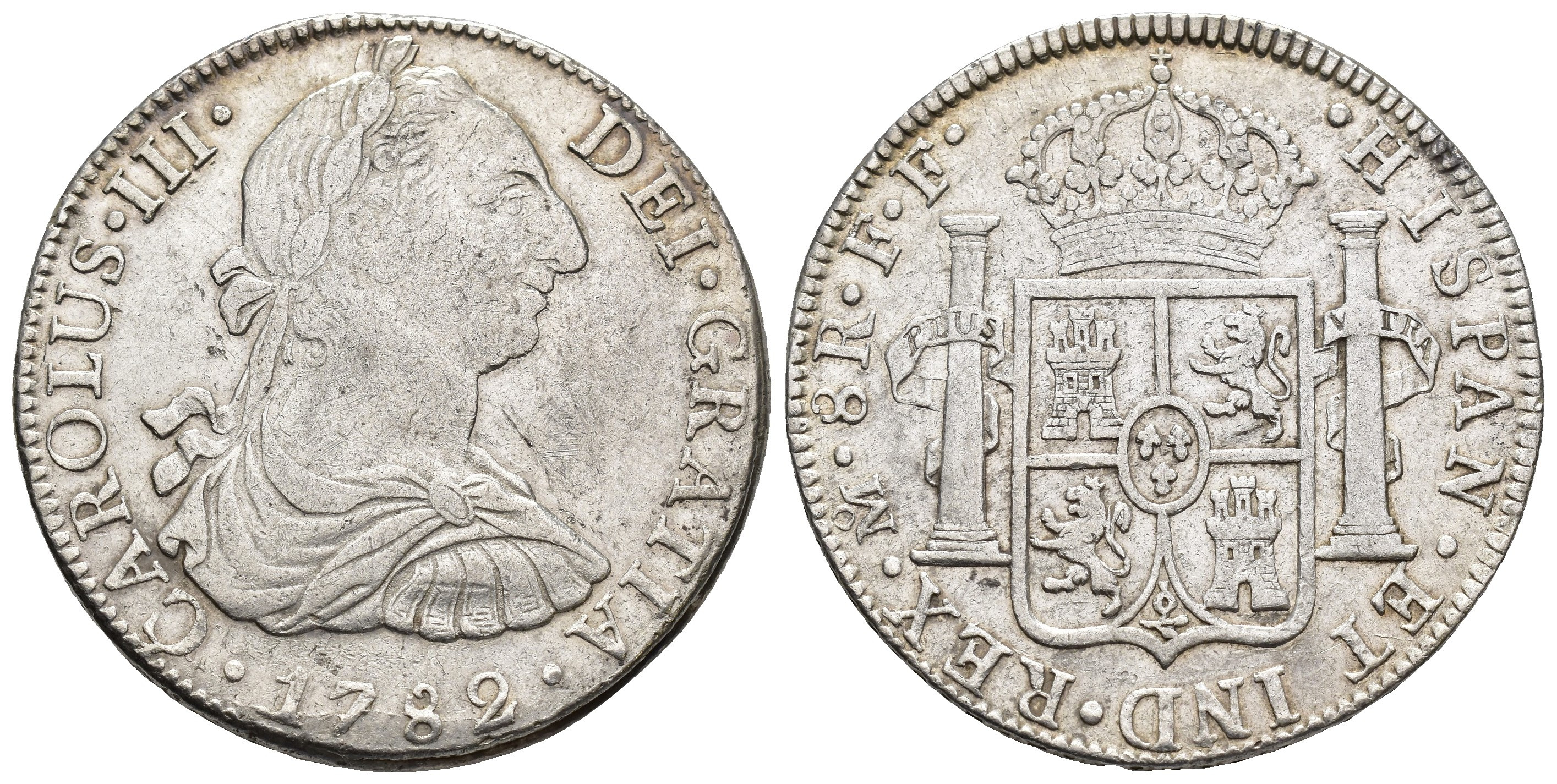 CARLOS III. 8 reales. 1782. México. FF. AR 26,89 g. 38,8 mm. VI-982; AC-1122. MBC.
