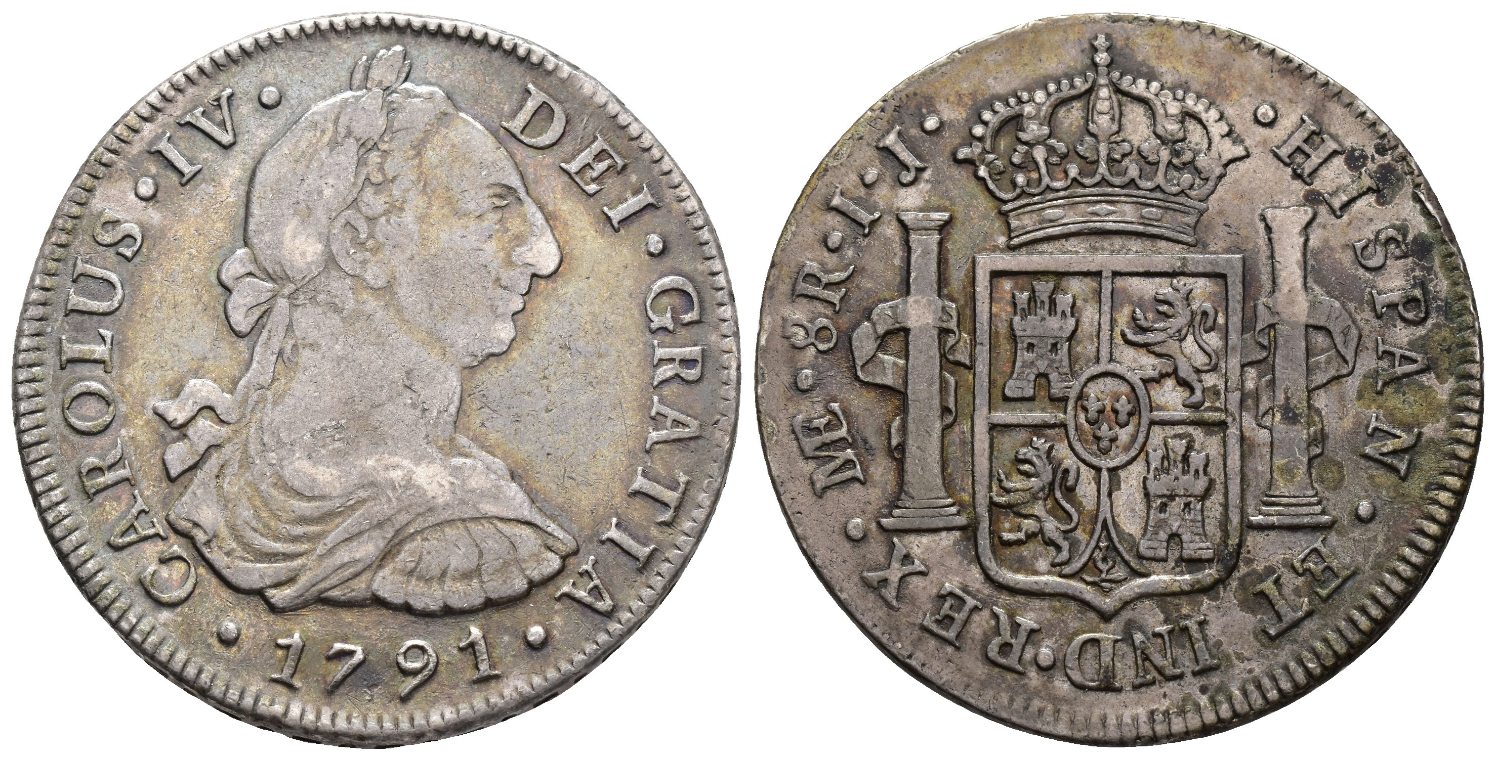 CARLOS IV. 8 reales. 1791. Lima. IJ. Busto de Carlos III. AR 26,65 g. 40,5 mm. VI-752; AC-905. MBC-/MBC.