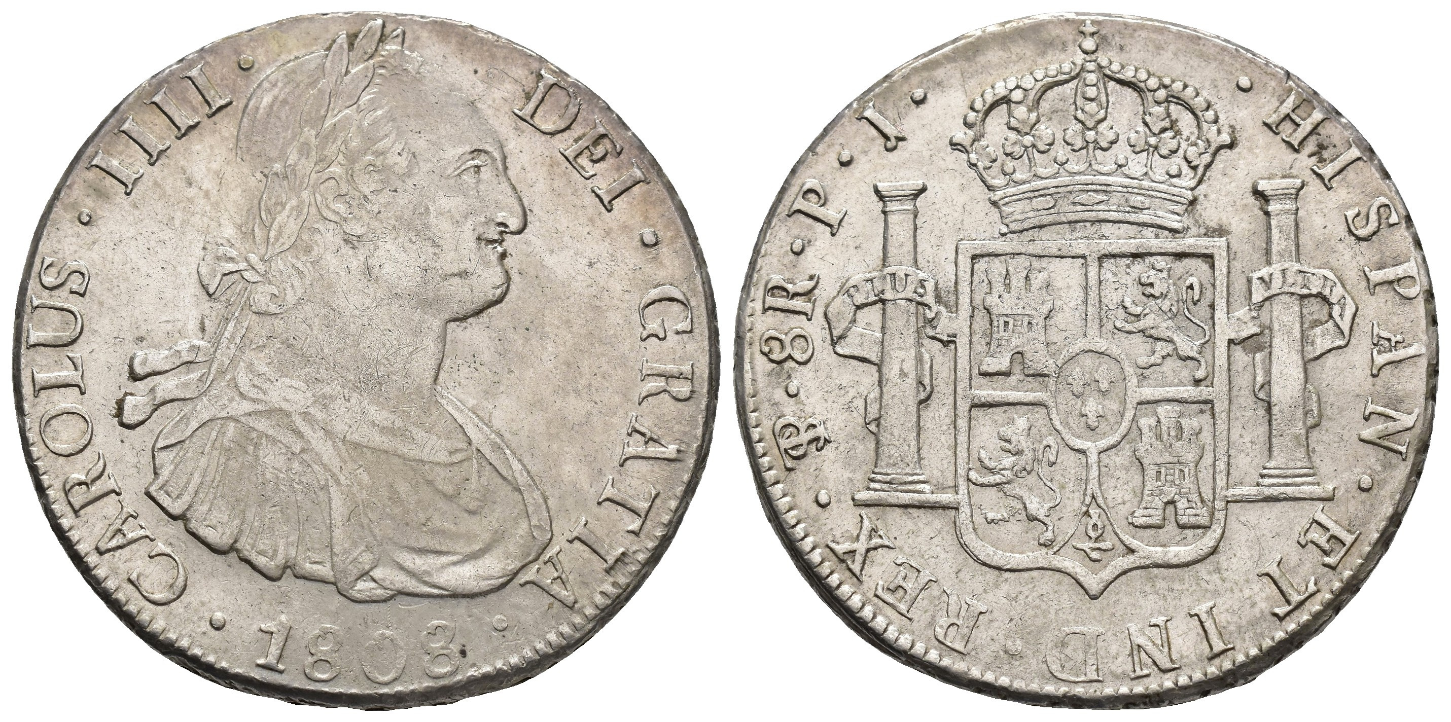 CARLOS IV. 8 reales. 1808. Potosí. PJ. AR 26,91 g. 38,4 mm. VI-828; AC-1014. MBC.