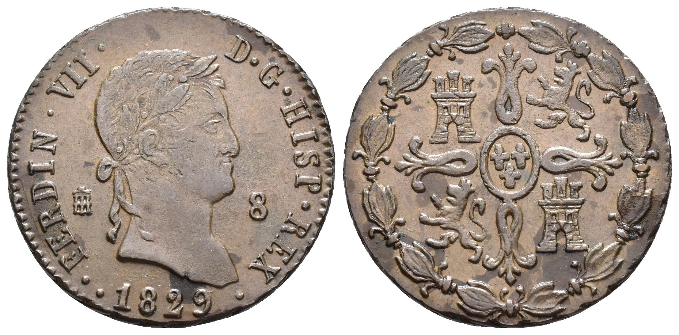 FERNANDO VII. 8 maravedís. 1829. Segovia. CU 11,71 g. 29,2 mm. VI-234; AC-233. MBC+/EBC-.