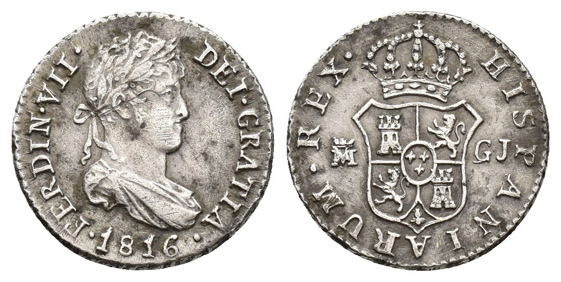 FERNANDO VII. 1/2 real. 1816. Madrid. GJ. AR 1,56 g. 14,3 mm. VI-348; AC-370. MBC+.