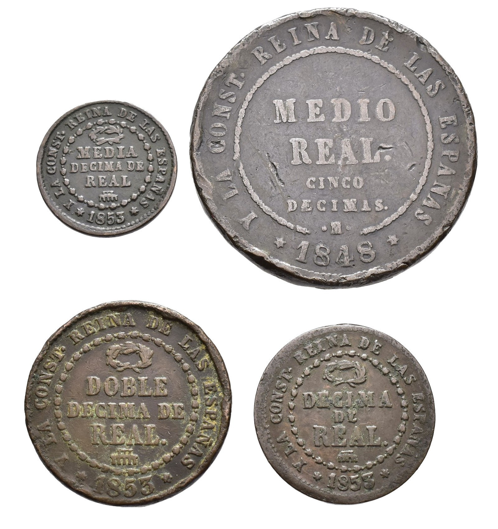 ISABEL II. Lote de 4 monedas. BC+/MBC.