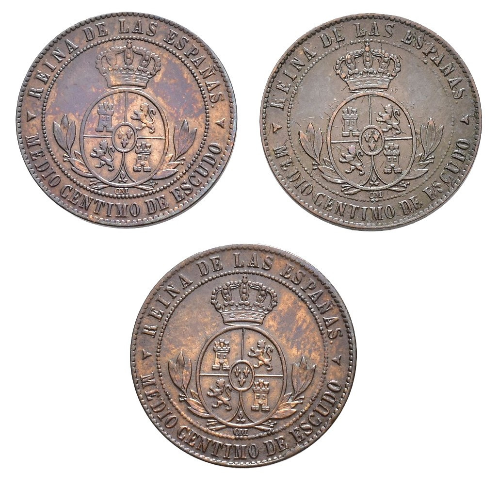 ISABEL II. Lote de 3 piezas de 1/2 escudo, Segovia, 1866, 1867 y 1868. MBC+/EBC.