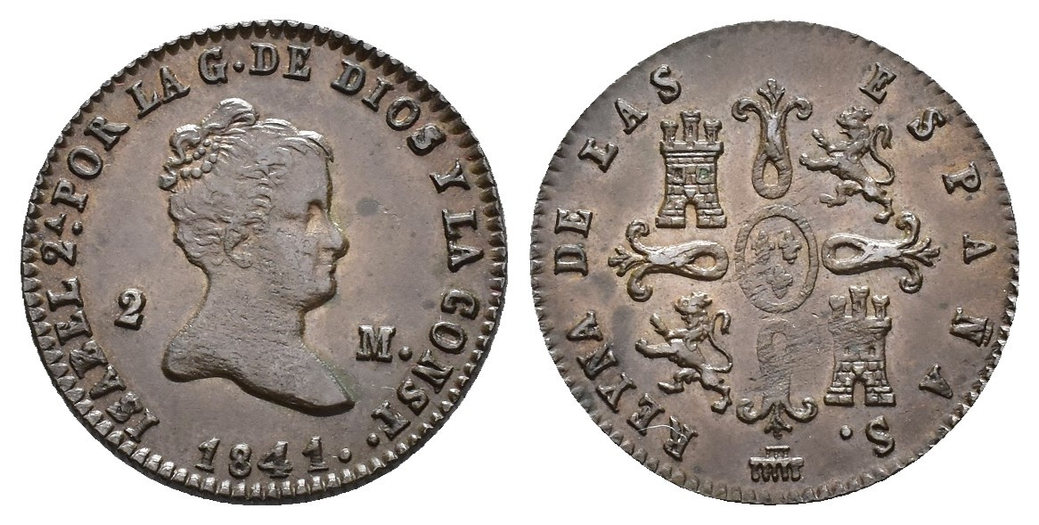 ISABEL II. 2 maravedís. 1841. Segovia. CU 1,92 g. 19 mm. VI-19; AC-52. Vanos. EBC-.