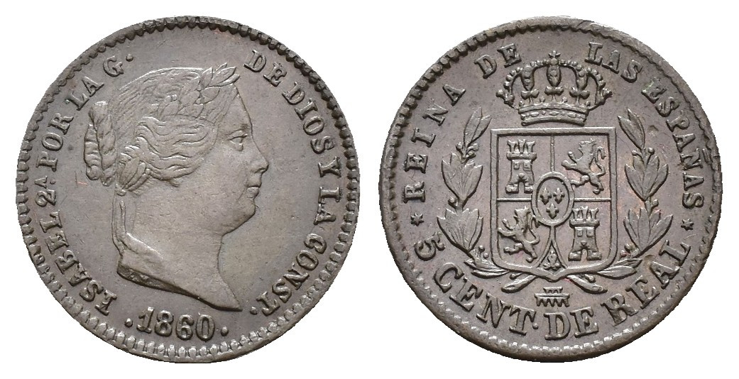 ISABEL II. 5 céntimos de real. 1860. Segovia. CU 2 g. 17,1 mm. VI-126; AC-165. EBC-.